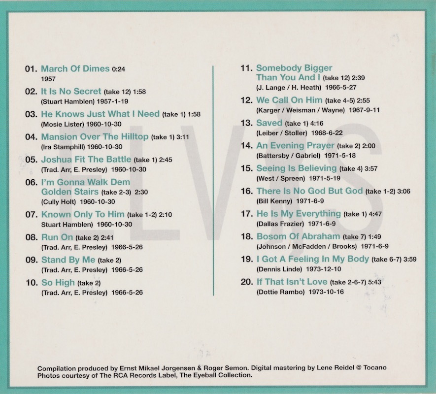 'An Evening Prayer' is listed as being take 2, but it's actually take 3 on here.