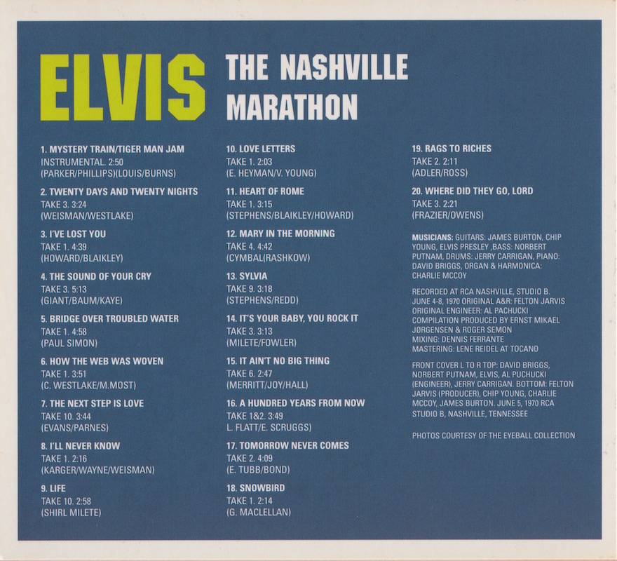 Take 1 of 'I'll Never Know' (track 8) is edited on here, to take out swearing in the middle of the song - the complete take can be found on FTD's classic album release of Love Letters From Elvis, released in August 2008 (see here).