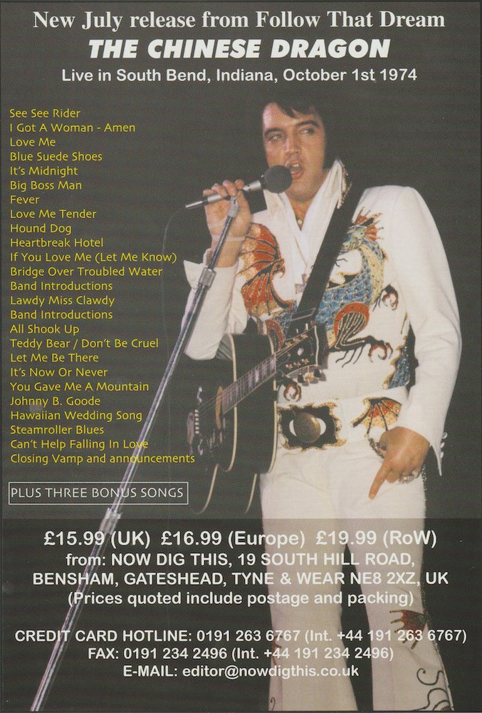 This CD was originally going to be called The Chinese Dragon, and was advertised as such in the June 2003 edition (issue 60) of the magazine Elvis: The Man And His Music.