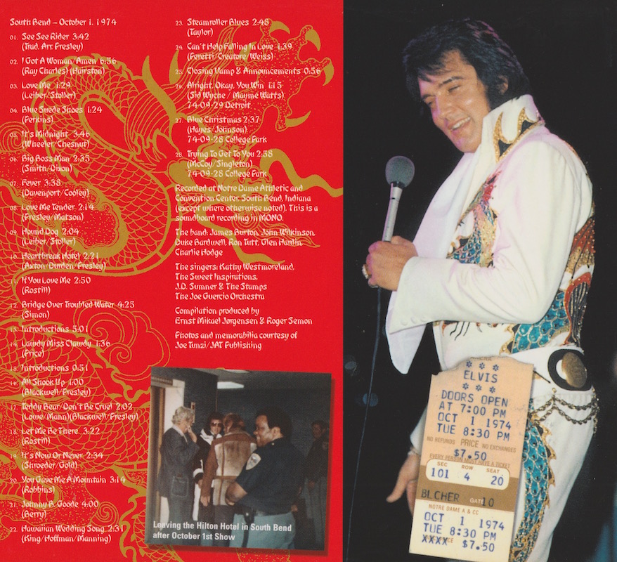 'Blue Christmas' (track 27) and 'Tryin' To Get To You' (track 28) were recorded at the University of Maryland Cole Fieldhouse, College Park, Maryland, on September 28 1974, and 'Alright, Okay, You Win' (track 26) was recorded during the band introductions at Olympia Stadium, Detroit, Michigan, on September 29 1974.
