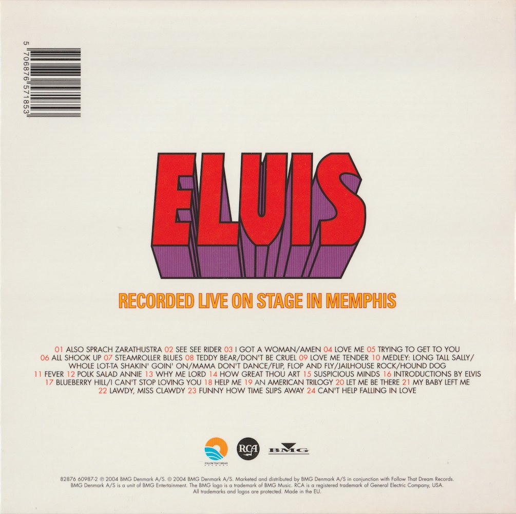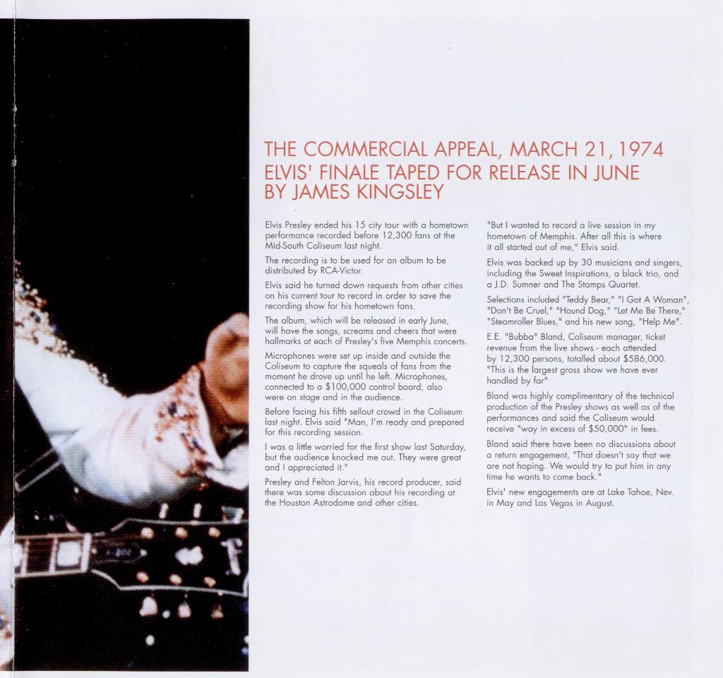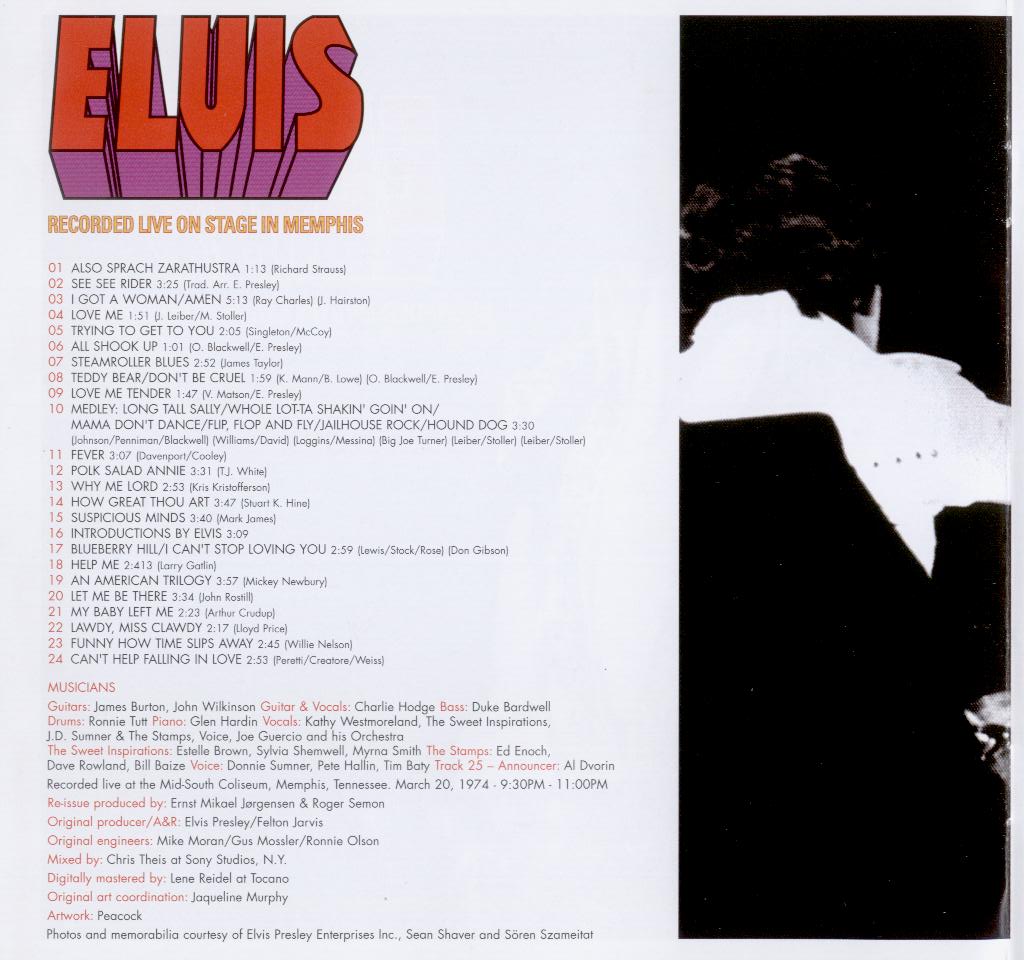 The songs 'All Shook Up', 'Steamroller Blues', '(Let Me Be Your) Teddy Bear / Don't Be Cruel', 'Love Me Tender', Fever', 'Polk Salad Annie', 'Suspicious Minds' and 'Funny How Time Slips Away' were not included on the original album, released in July 1974.