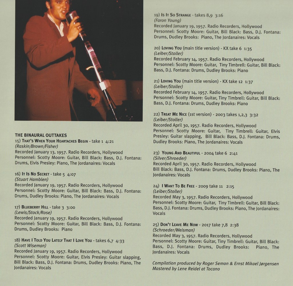 Takes 1 and 2 of 'I'm Counting On You' (track 3) are listed in the book but it's actually takes 1a and 1b that appear on the CD. The real "Take 2" was released on the FTD classic album of Elvis Presley in July 2006 (see here).