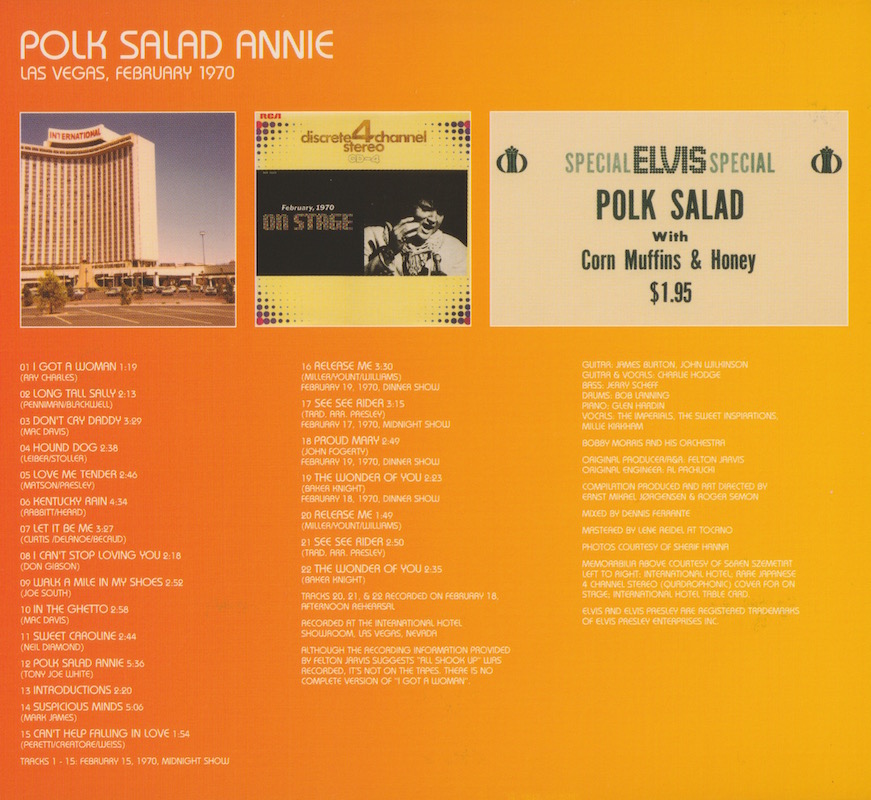 'The Wonder Of You' (track 19) is listed on the cover as being from the February 18 dinner show, but it's actually the midnight show performance from that date on here. The dinner show performance is the live master of 'The Wonder Of You', released as a single back in June 1970.