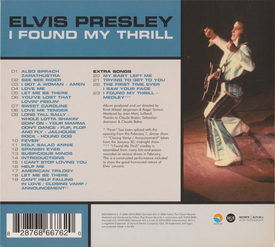 The 'I Found My Thrill - Medley' is a medley of 'Blueberry Hill' and "I Can't Stop Loving You' that has been assembled from various sound booth recordings from this season to show the good humoured nature of Elvis' concerts.