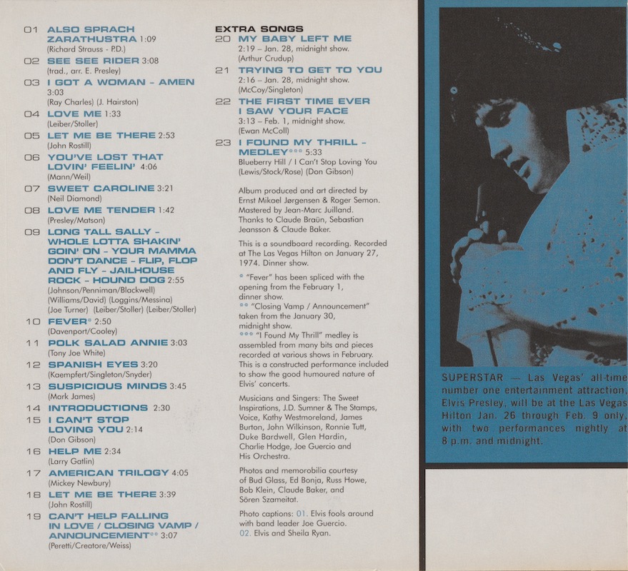 Elvis sings a line of 'The Most Beautiful Girl In The World' during the introductions (track 14), although it isn't listed on the cover.