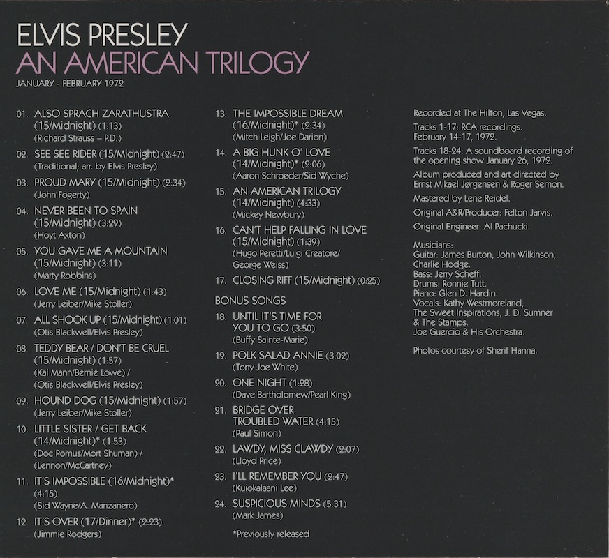 Recorded live at the Las Vegas Hilton, Las Vegas (RCA multi-track and soundboard recordings).