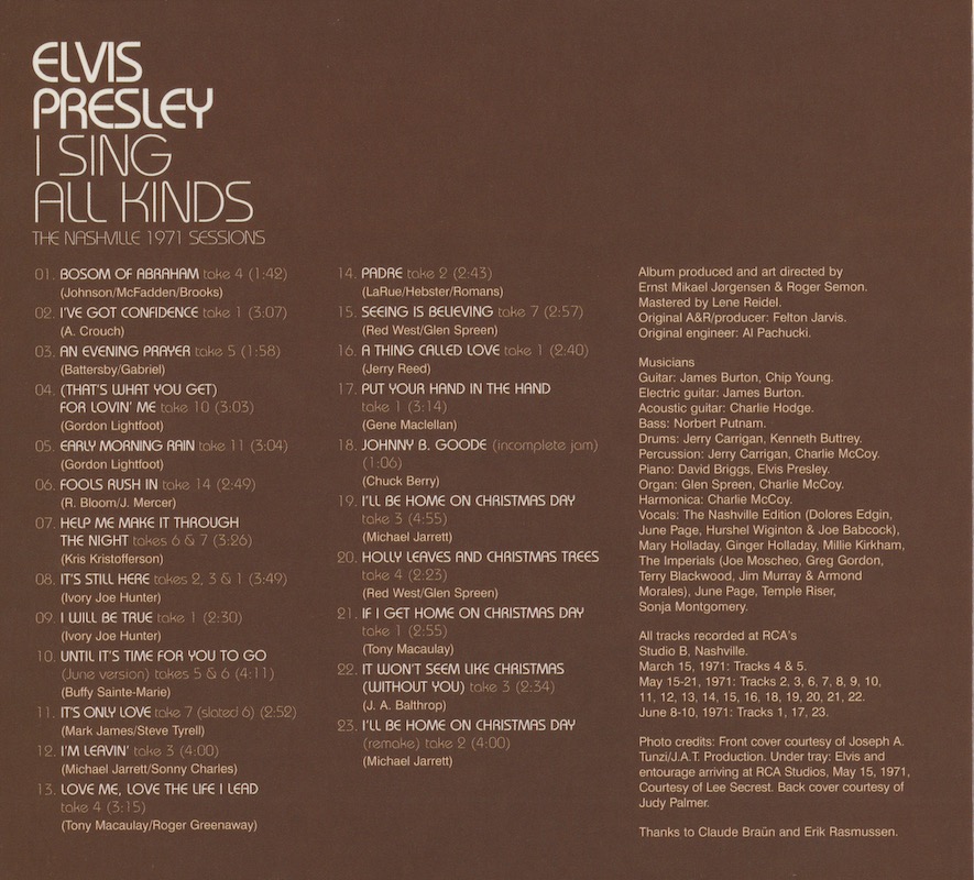 Take 11 of 'Early Mornin' Rain' (track 5) is presented here without backing vocals, or at least they are very low in the mix.