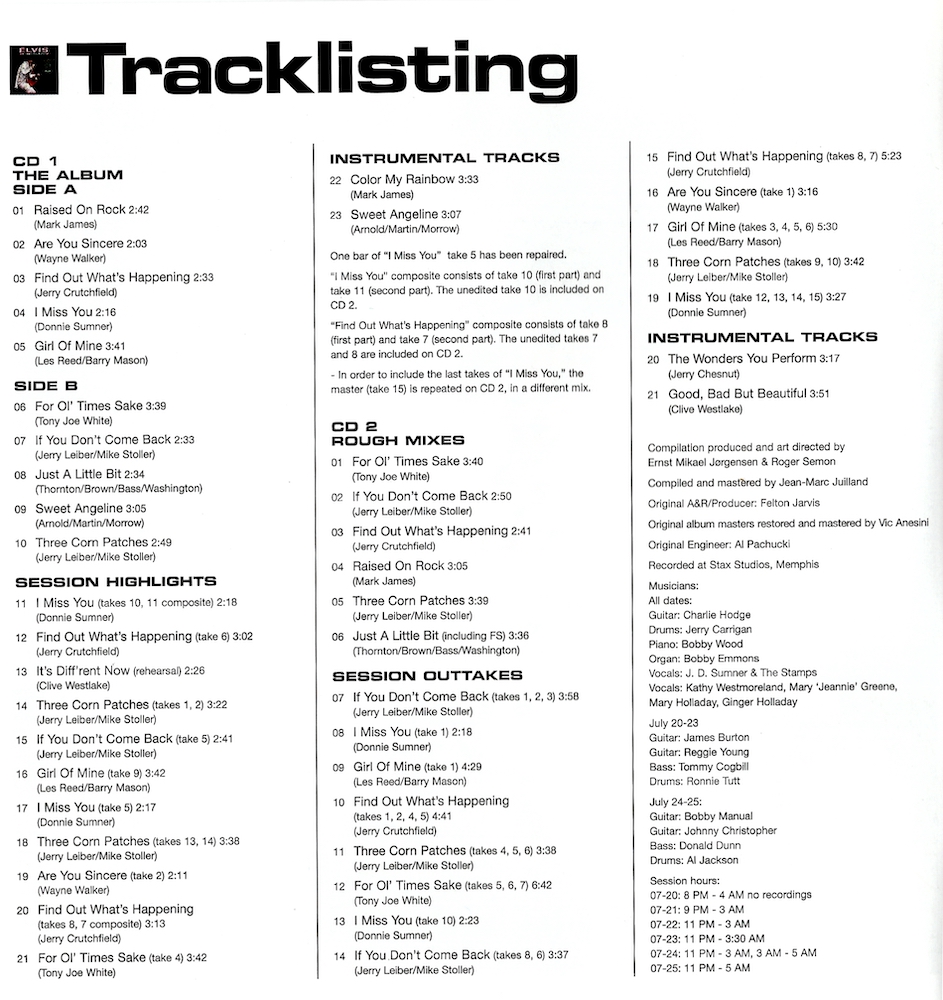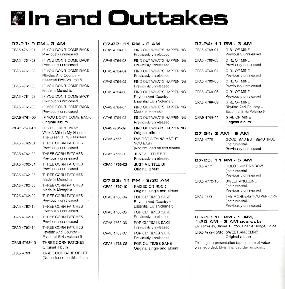 Elvis never recorded any vocals to 'Color My Rainbow', 'The Wonders You Perform' and 'Good, Bad But Beautiful'.