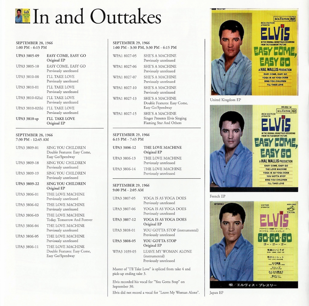What is listed as being take 6 of 'You Gotta Stop (instrumental)' on the cover is actually take 1 (GOVC-1), and is listed correctly in the "In And Outtakes" section of the boolket.