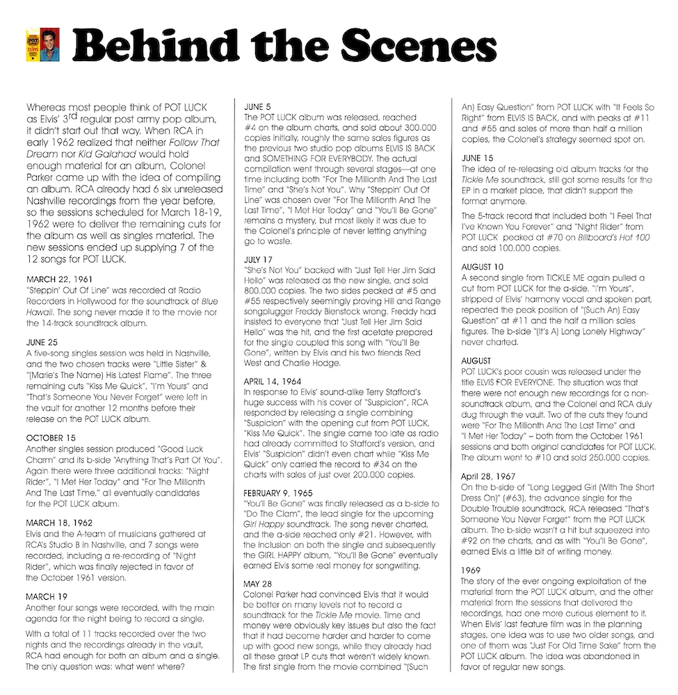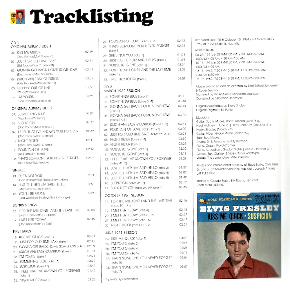 In the booklet it incorrectly lists that the master of 'Suspicion' is spliced from take 5 and a "work part" take 3, but this is not the case. While compiling the later "sessions" set The Pot Luck Sessions, released in November 2021 (see here), and going back to the original session tapes, it was discovered that it was in fact spliced from take 5 and the ending of take 4, although it still incorrectly lists just take 5 as the master on that set!