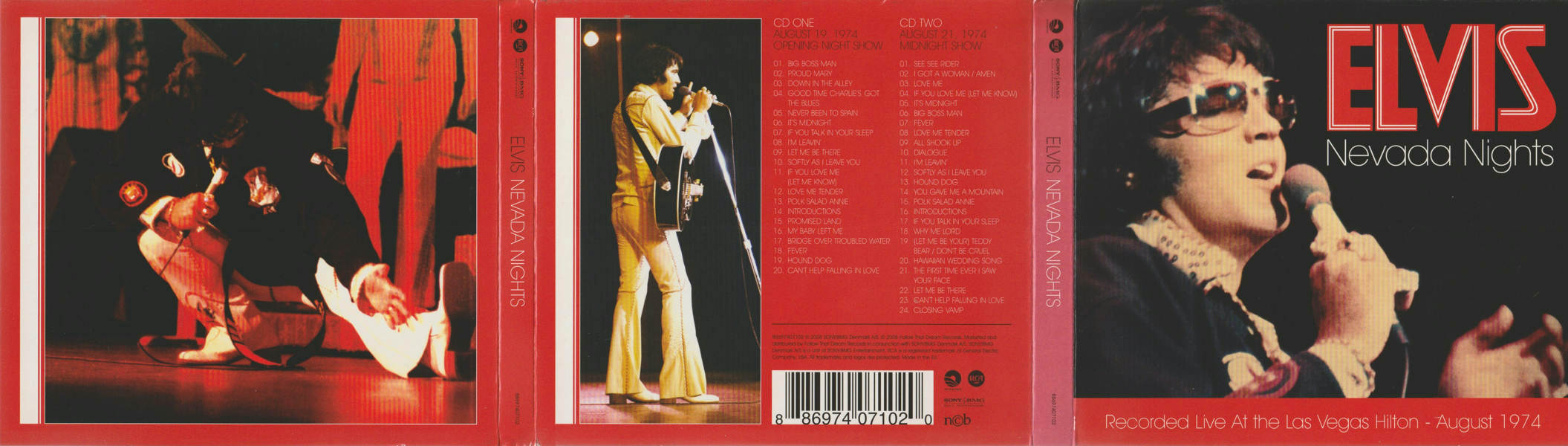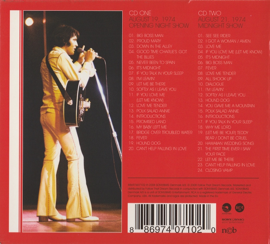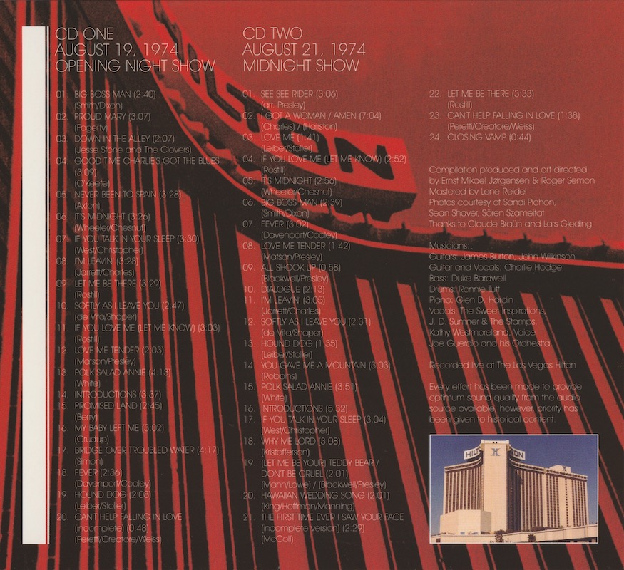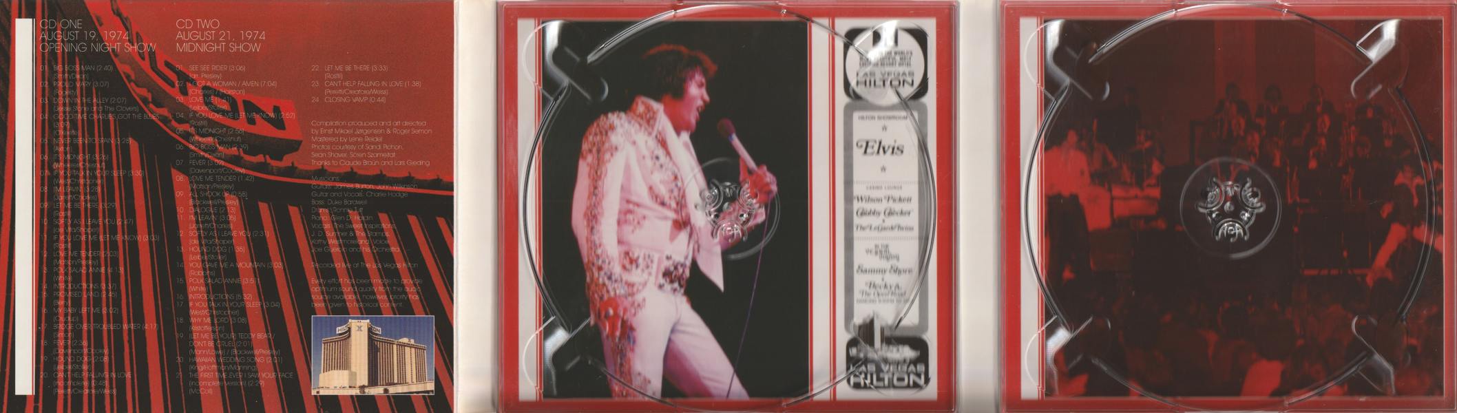 Elvis sings a line of 'Stop The World And Let Me Off' before 'I'm Leavin' (CD2, track 11), and a couple of lines of 'Take These Chains From My Heart' while introducing J.D. Sumner (CD2, track 16), although they are not listed on the cover.