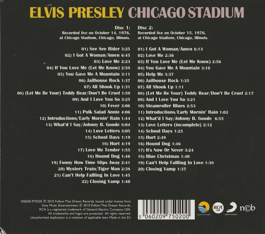Part of Jerry Scheff's solo has been edited on CD1, as well as 'Love Letters' on CD2, due to the tape being turned over when the sound engineer was recording the shows.