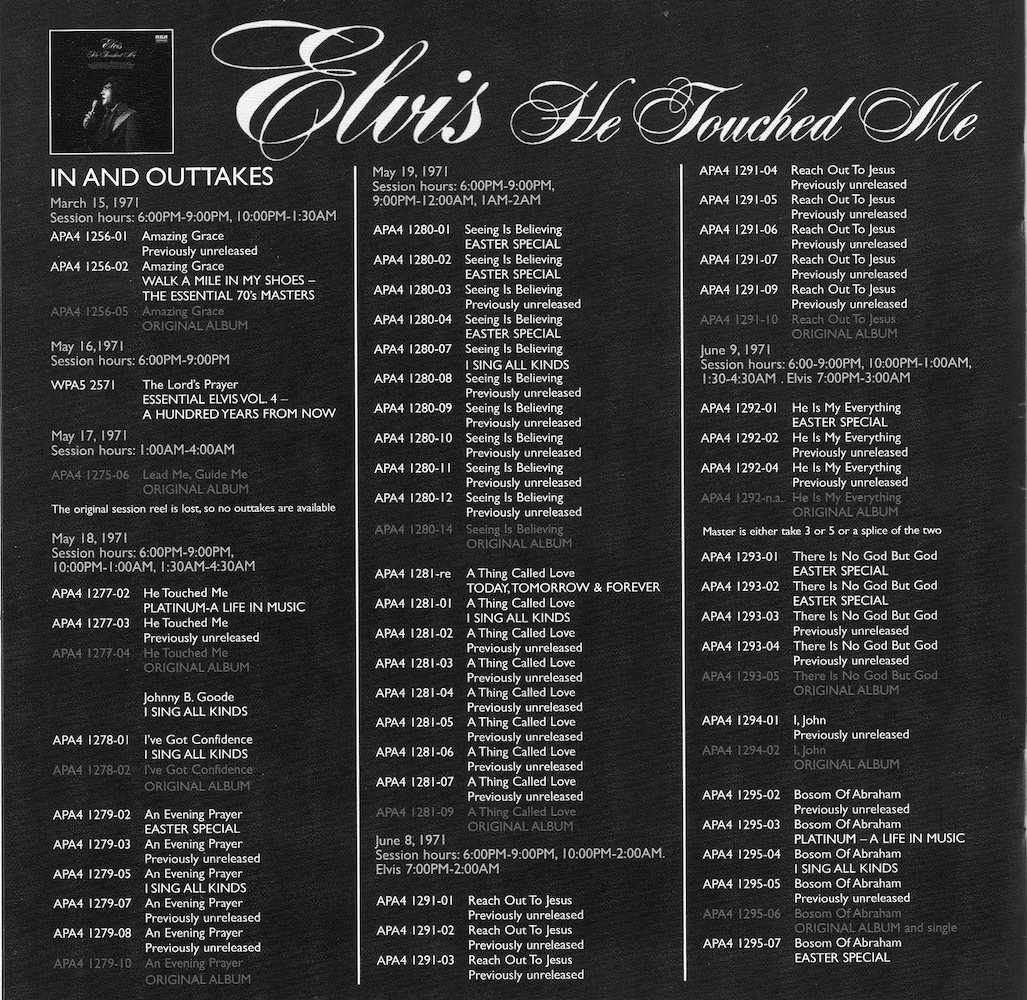 | Original album and outtakes from the recording sessions which produced the album He Touched Me. |