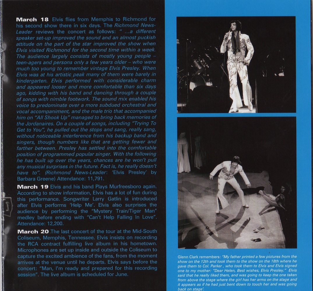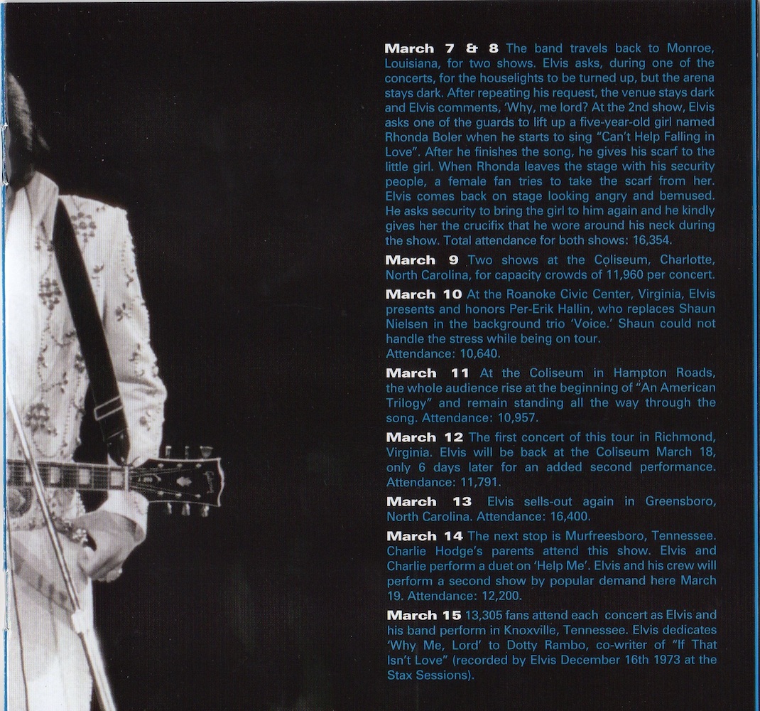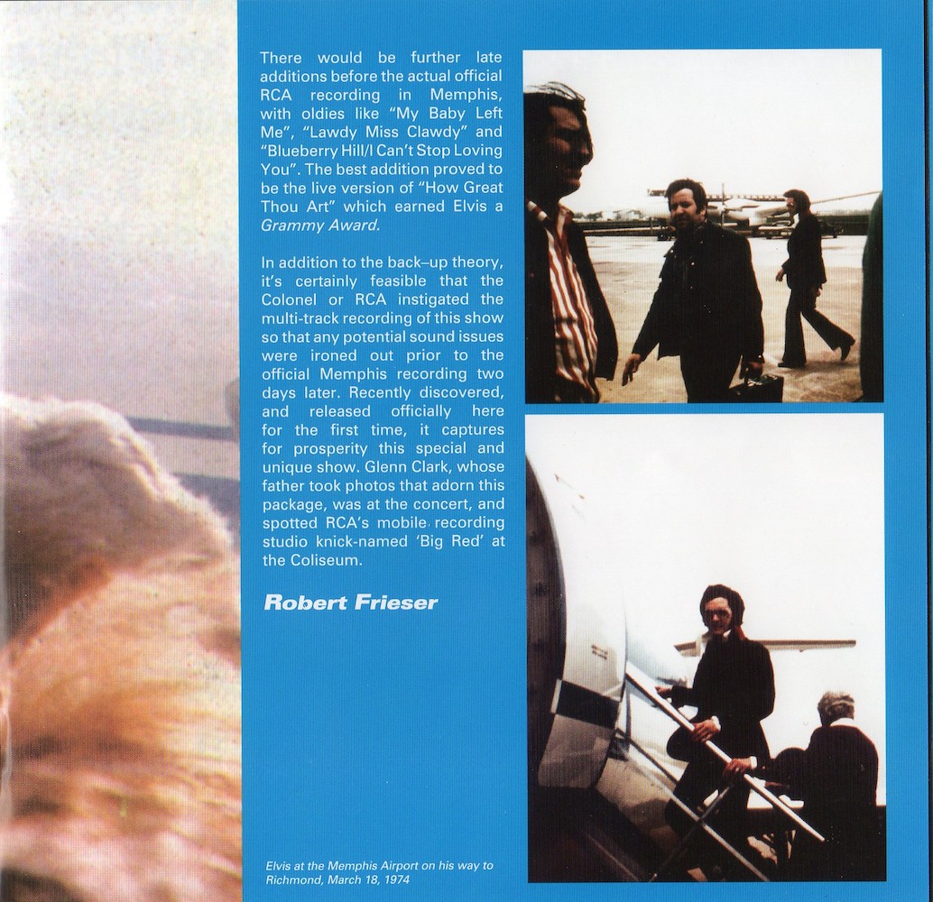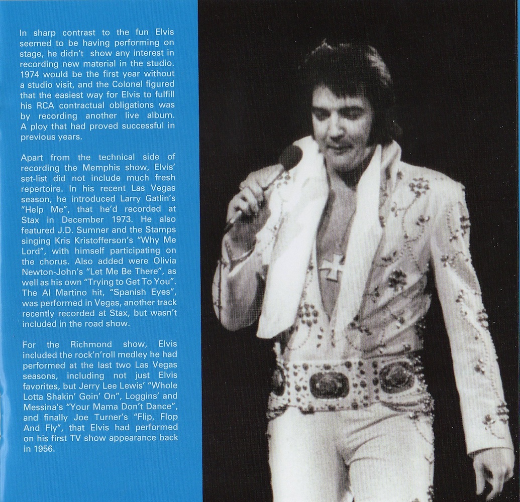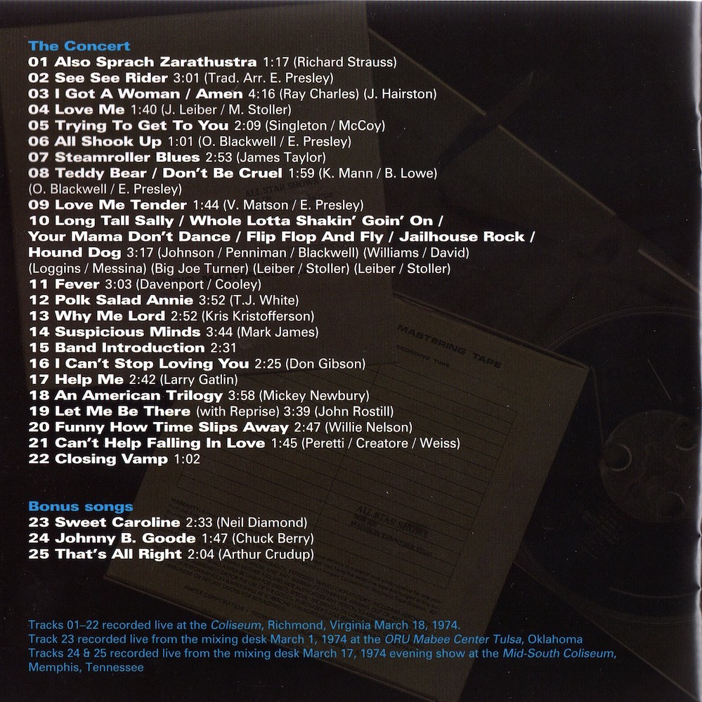 'I Got A Woman' had to be restored using the March 20 1974 recording of the same song from Memphis, due to damage on the original tape.