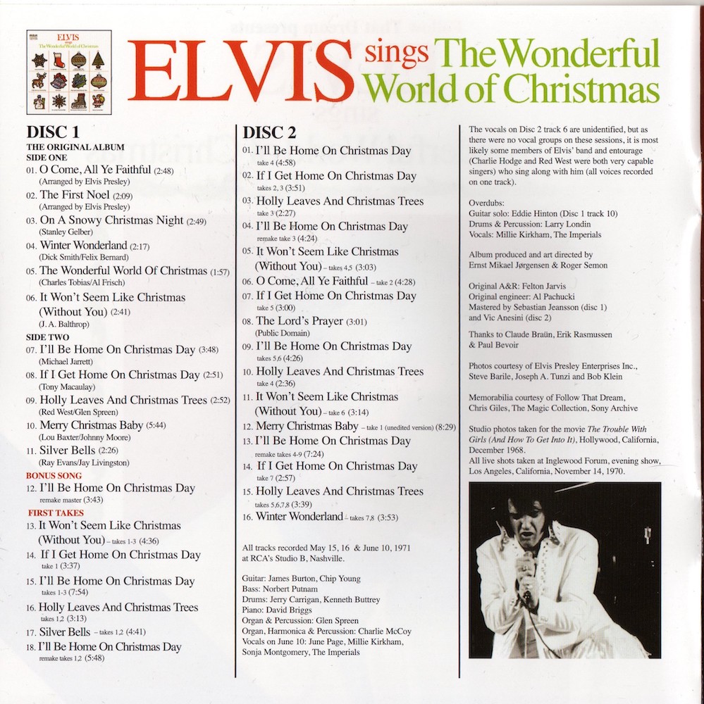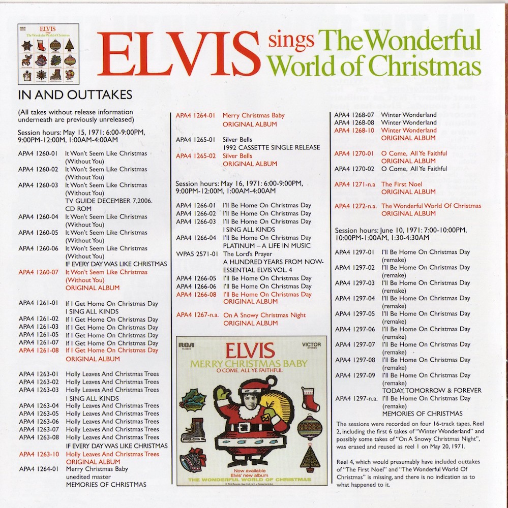 Take 3 of 'I'll Be Home On Christmas Day' (CD2, track 4) has the additional verse that was not recorded on the master of the song. Takes 2 (CD1, track 18), 3 (CD2, track 4) and 9 (CD2, track 13) of the remake also contain the additional verse.