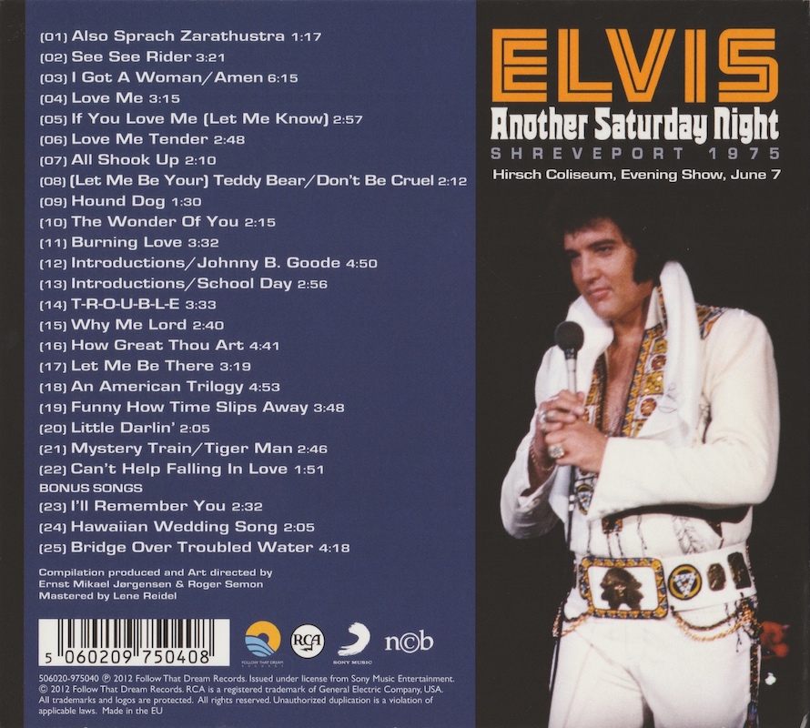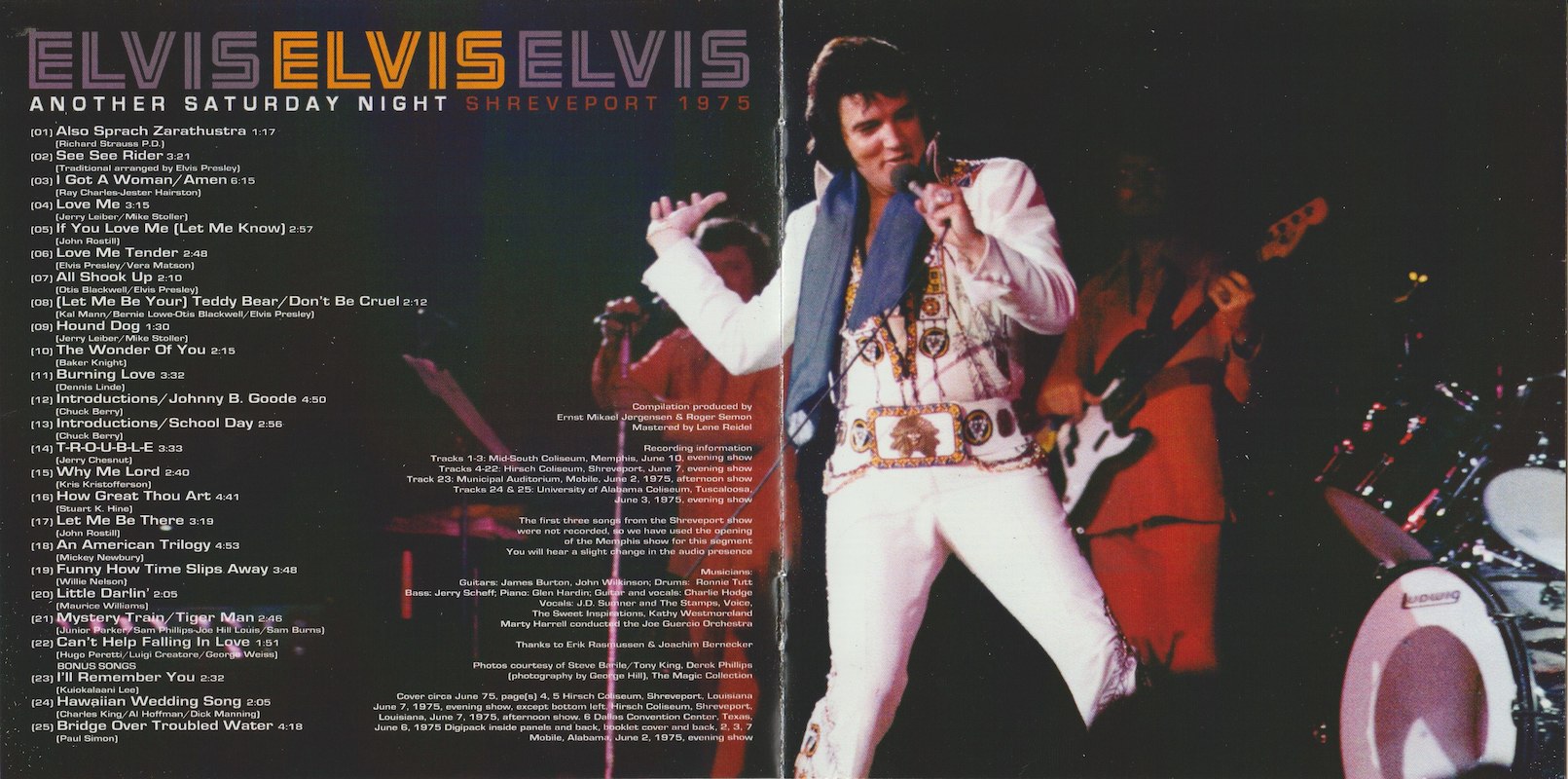 As the first three songs were not recorded at the Shreveport concert, they were used from Memphis on June 10 instead, to give the impression of a complete concert, although you can hear a slight change in audio where the two sources change.