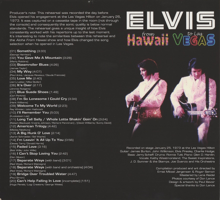 It was recorded the day before Elvis opened his engagement at the Las Vegas Hilton on January 26 1973, and was captured on a portable tape recorder by Don Lance, who was watching in the room.