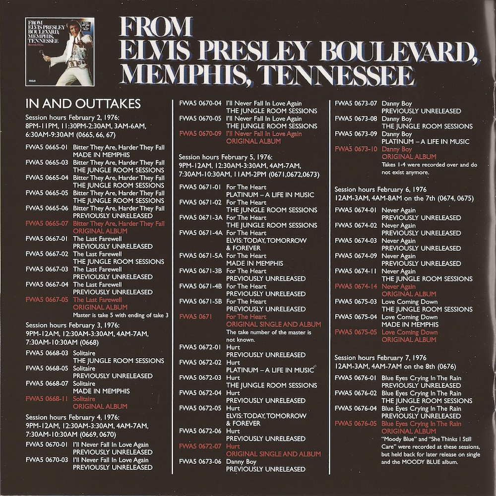 The sequence of recording of 'For the Heart' was takes 1, 2, 3a, 4a, 5a, 3b, 4b, 5b etc.