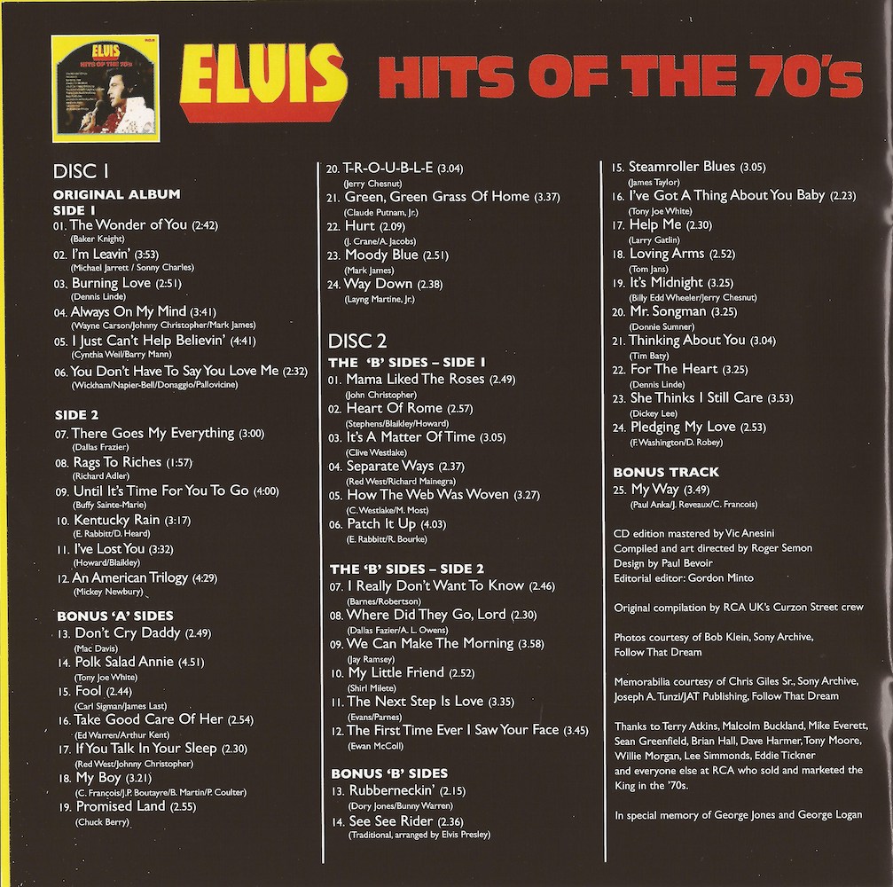 The live version of 'My Way' (CD2, track 25) used here is not the same live version of the song used on the original November 1977 single, which was recorded on June 21 1977. The version used here is from April 25 1977.