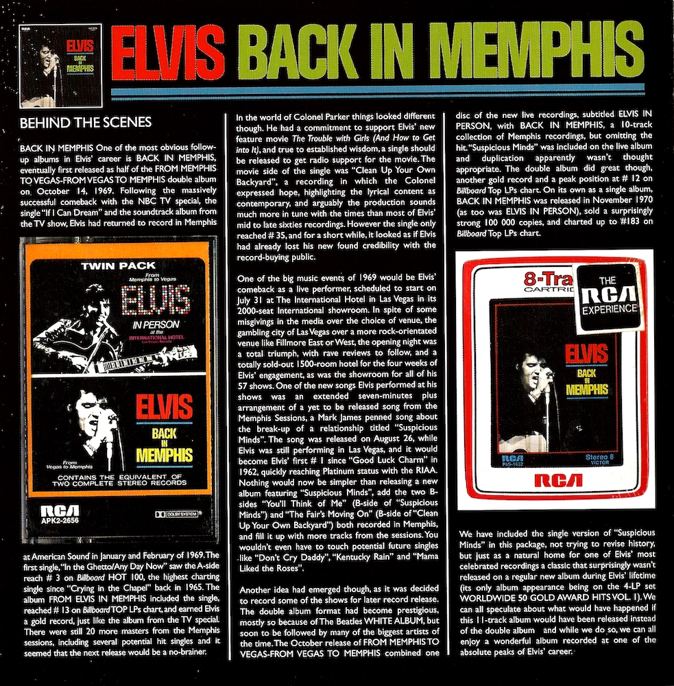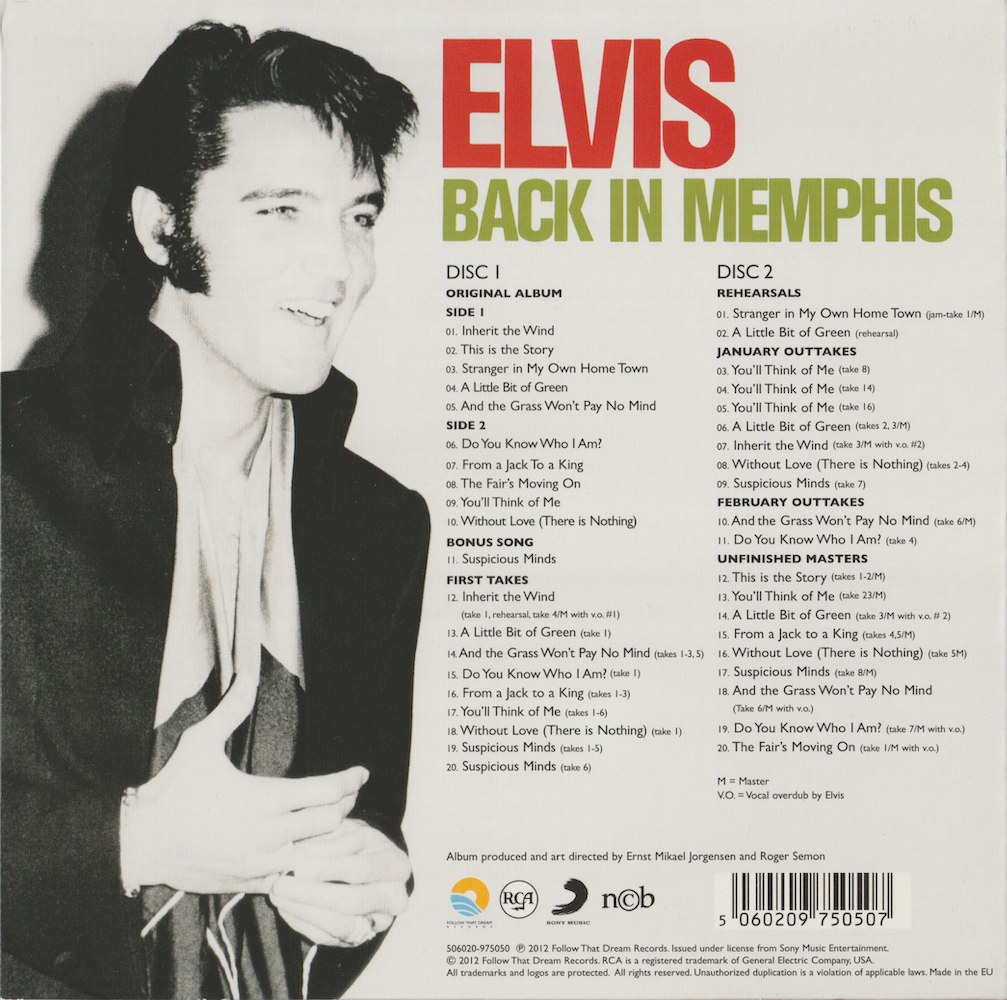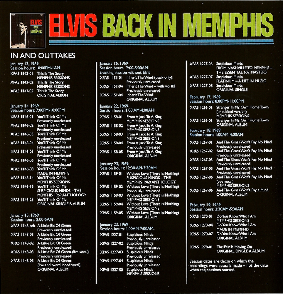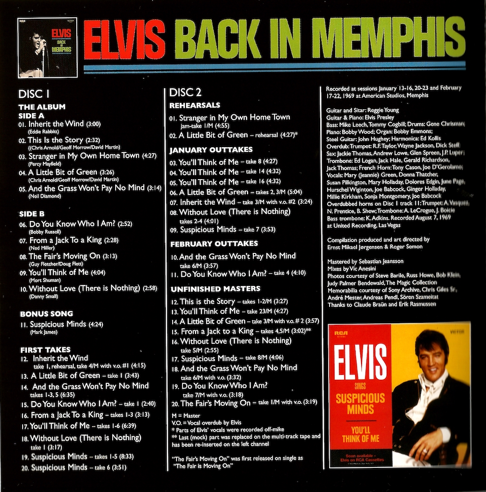 CD2, track 7 is Elvis' second vocal overdub to the master of the rhythm track, which is take 4, but the cover incorrectly lists the master of the rhythm track as being take 3!