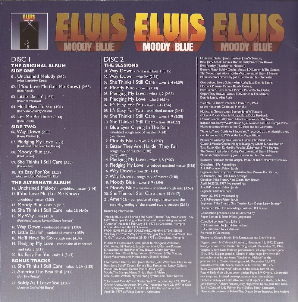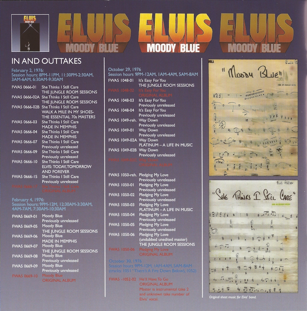 Although not listed, take 8 of 'She Thinks I Still Care' is heard in between takes 7 and 9 (CD2, track 9).