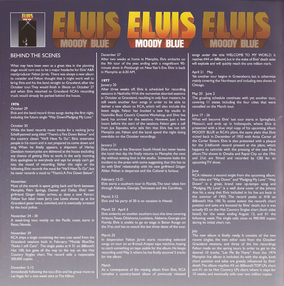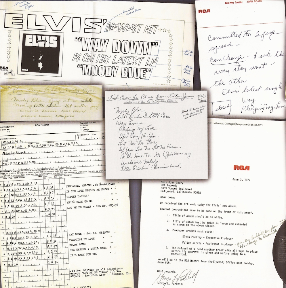 The sequence of recording for 'Way Down' is a brief rehearsal, followed by take 1 (long false start), take 2 (two short false starts), take 2a (complete tske), take 2b (short false start and long false start) and 2c (master take).