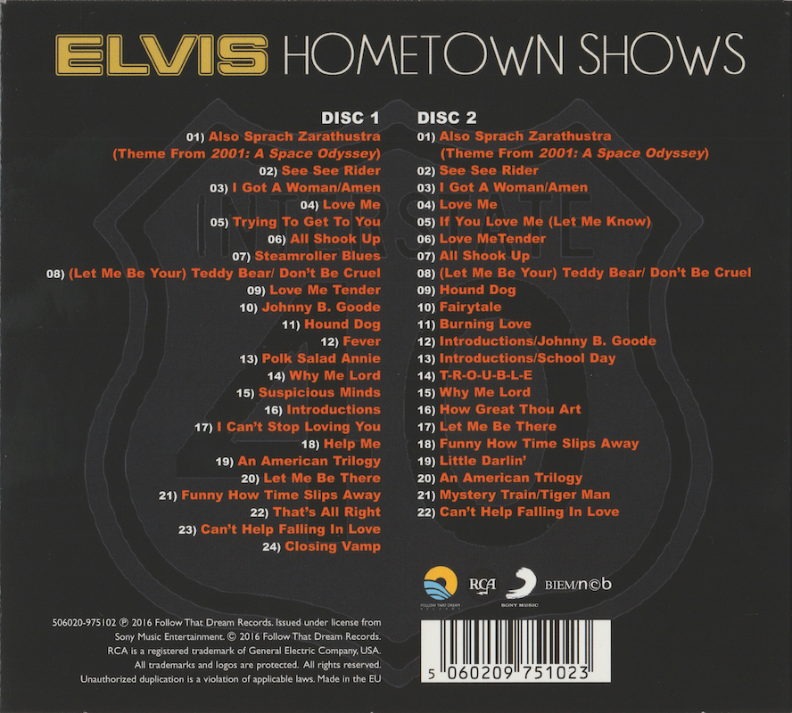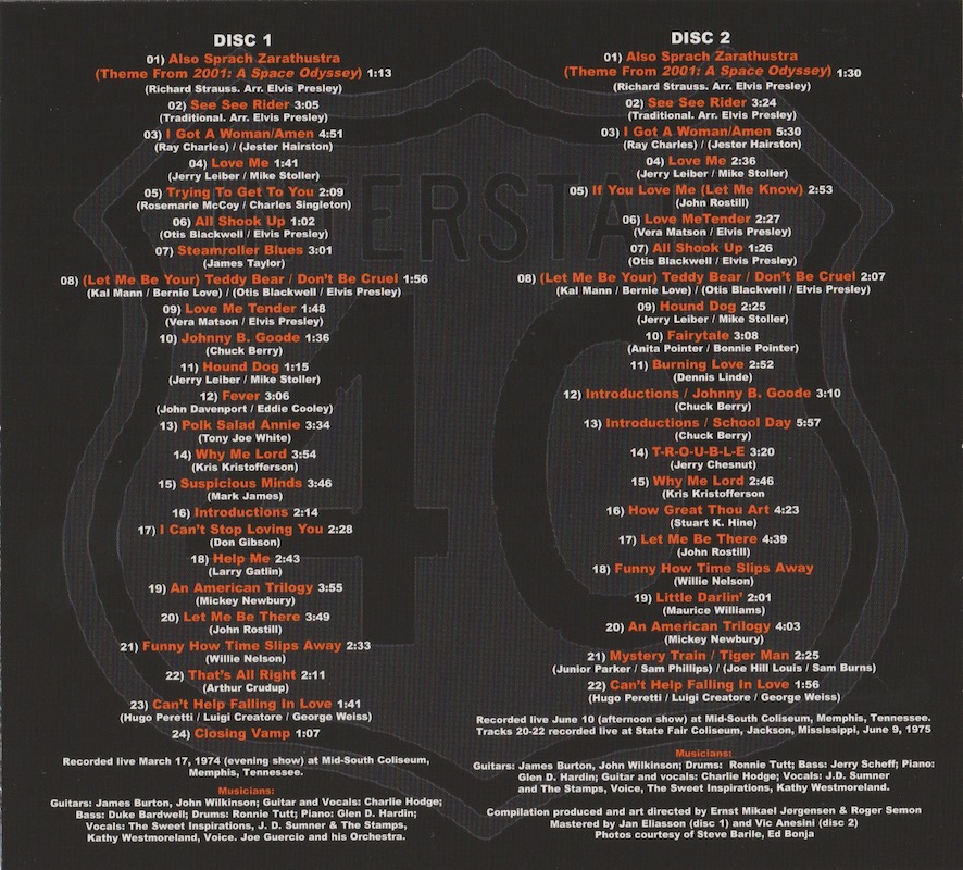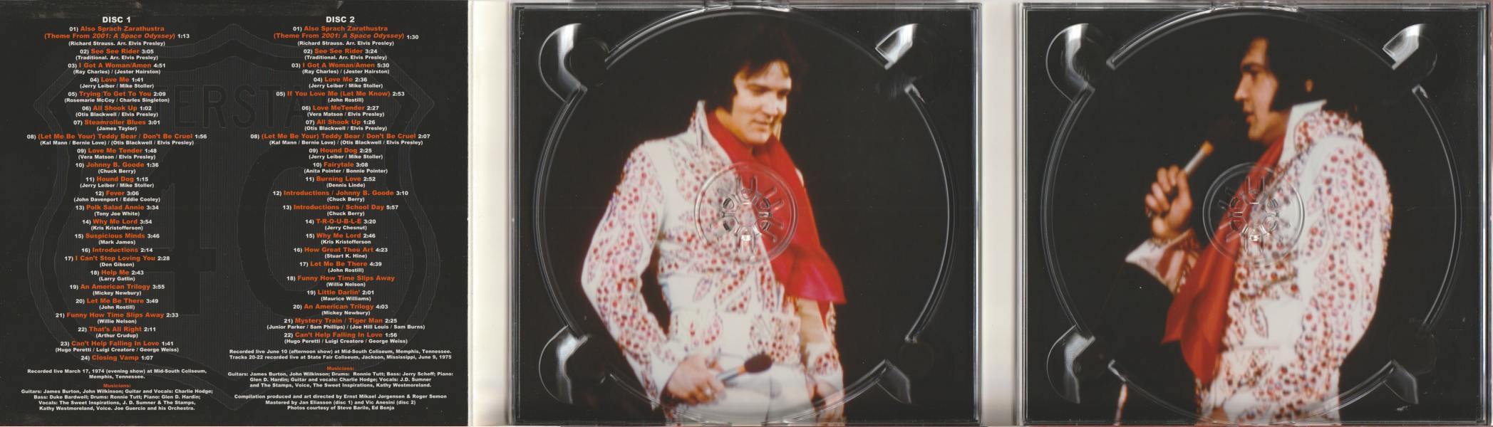 As the original tape runs out mid-way through 'An American Trilogy' at the June 10 1975 show, to give the impression of a complete concert the last three songs (CD2, tracks 20-22) come from the show in Jackson, Mississippi on June 9 1975.