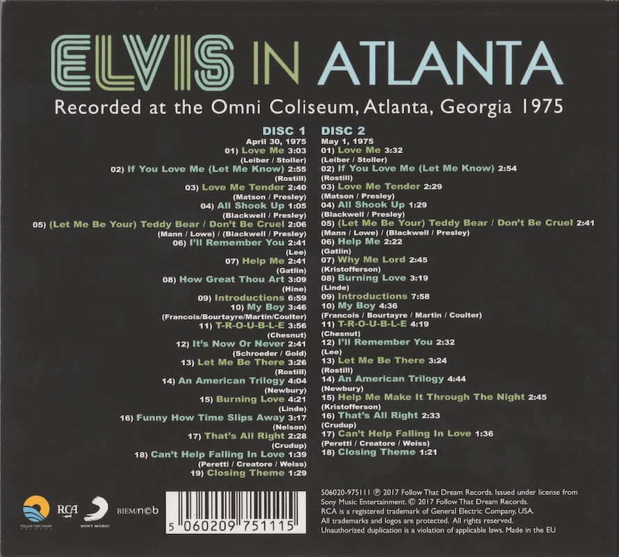'Help Me', 'It's Now Or Never' and 'That's All Right' from April 30 show, were previously released on FTD's Southern Nights in January 2006 (see here).