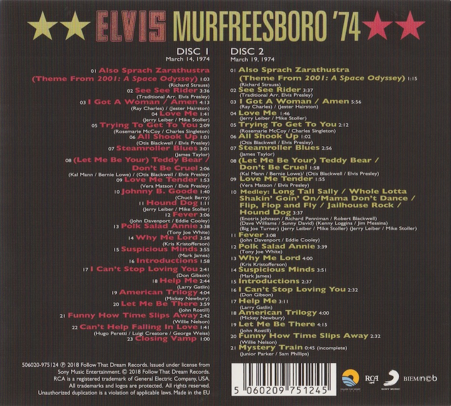 The original source tape runs out mid-way through 'Mystery Train' at the March 19 1974 show (CD2).