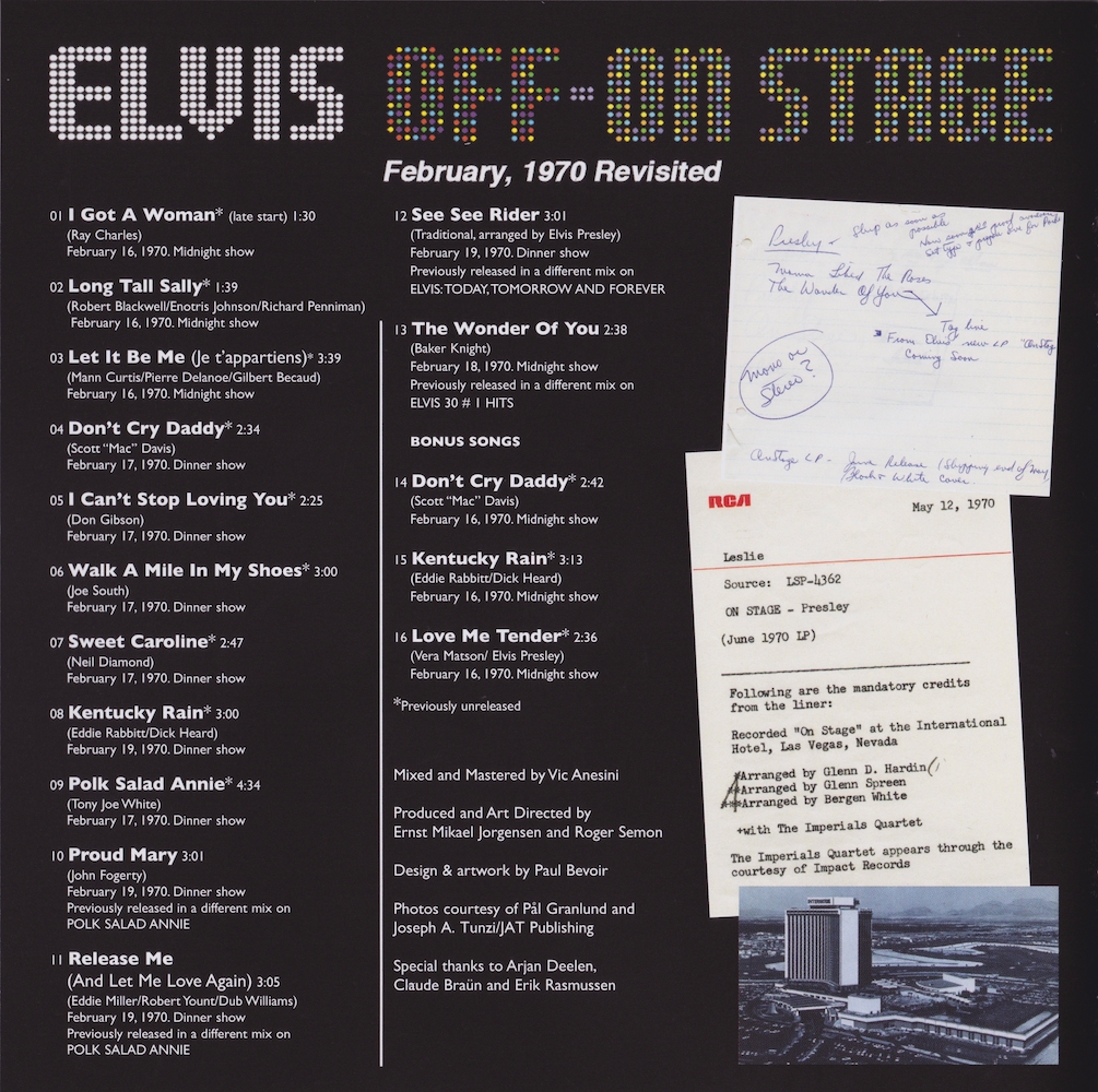 Recorded live on stage at the International Hotel, Las Vegas - February 1970 (RCA multi-track recordings)
