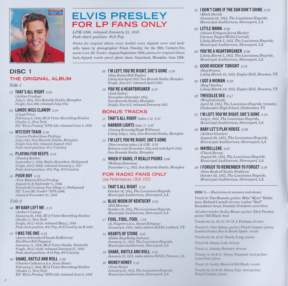 | Original album and outtakes from recording sessions for songs which made up the album For LP Fans Only, along with live radio and TV performances from 1954 to 1956, and home recordings from around the time the original album was released. |