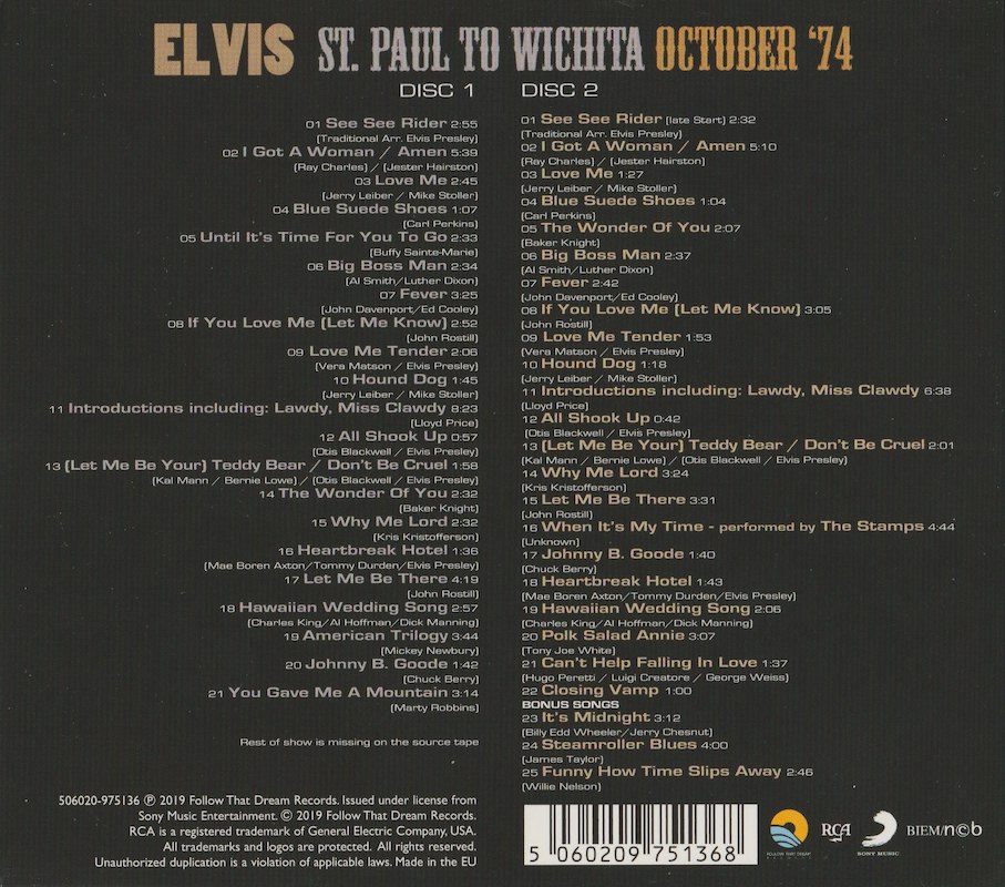 The show in St. Paul (CD1) is incorrectly dated as being from October 2 1974 on this set, where it's actually from October 3 1974.