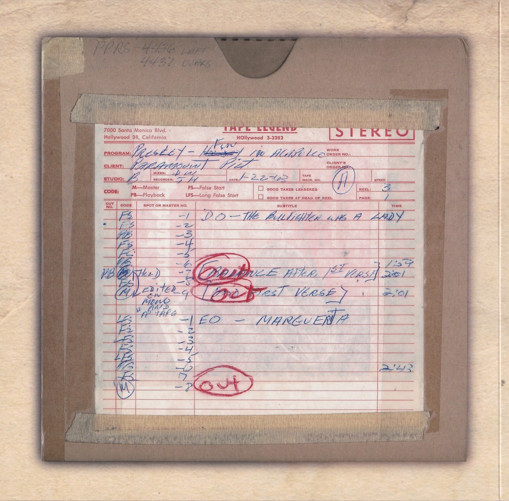 The line from Take 10 of 'I Think I'm Gonna Like It Here' was physically cut from the session tape reel and replaced with the same line from Take 7, meaning the complete Take 10 now does not exist on tape.