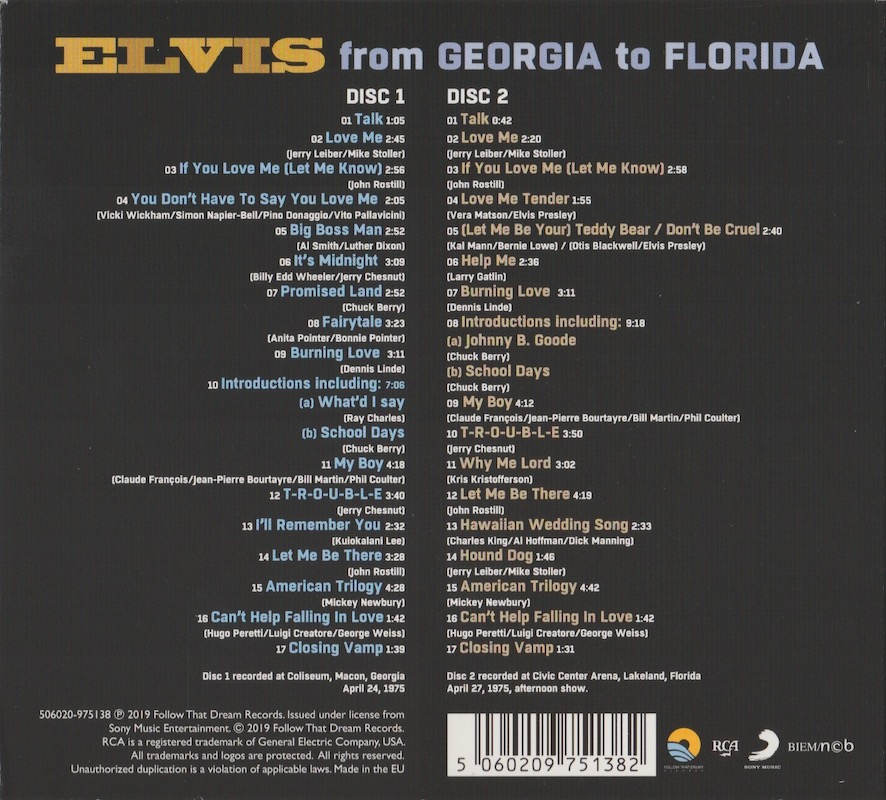 Recorded live in Macon, Georgia and Lakeland, Florida (soundboard recordings).