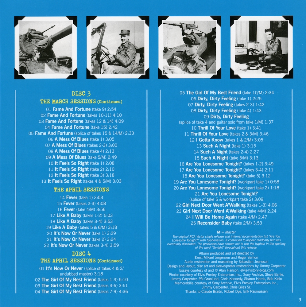 This CD set is the best source for these recording sessions, where everything has been restored and remastered from scratch. Unfortunately, there are some issues with some of the takes presented on this set, one being a glitch on take 15 of 'Soldier Boy' near the end, for which a replacement disc (CD2) was sent out to all buyers, thus rectifying this fault.