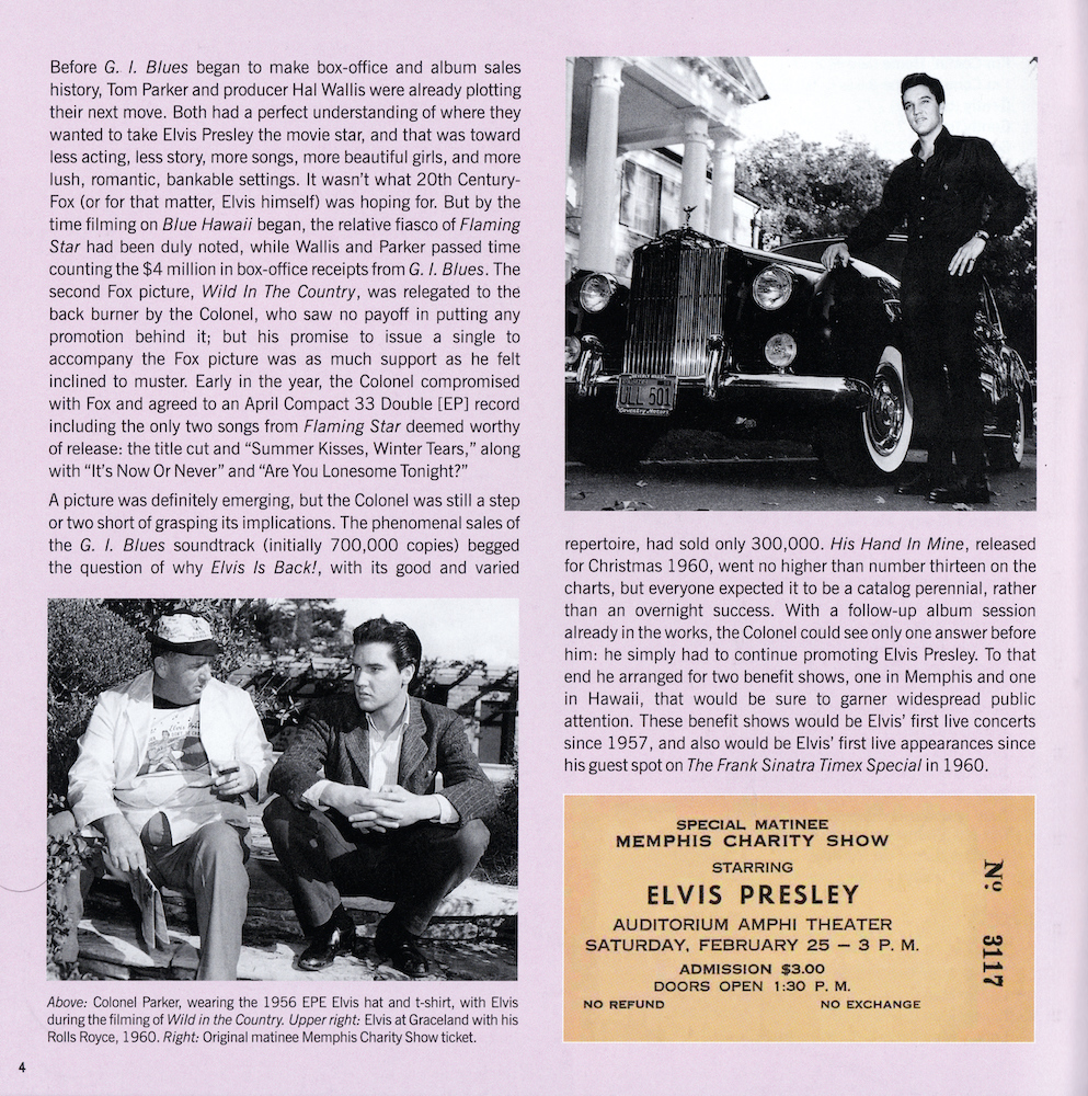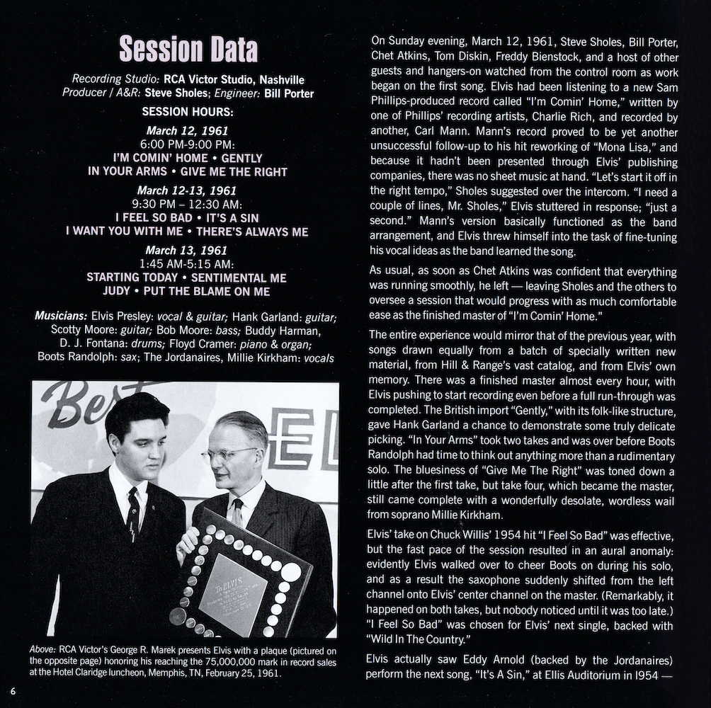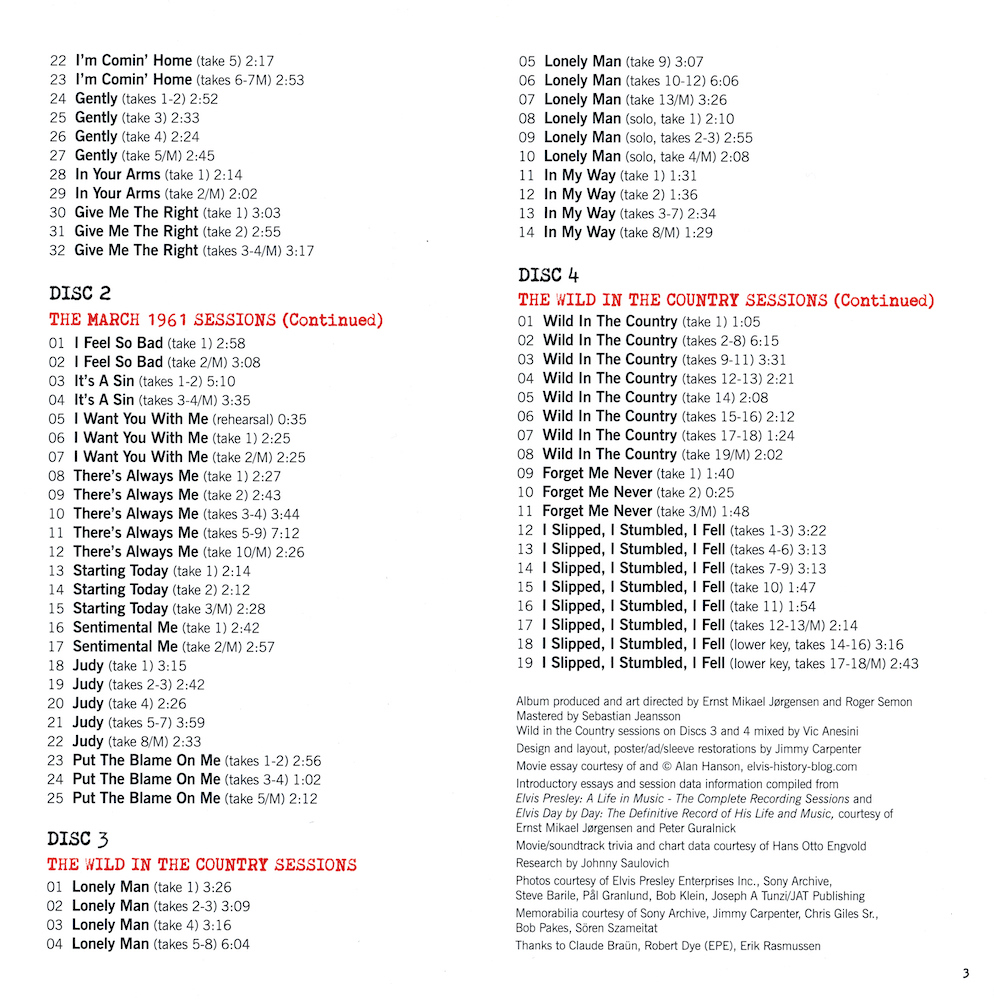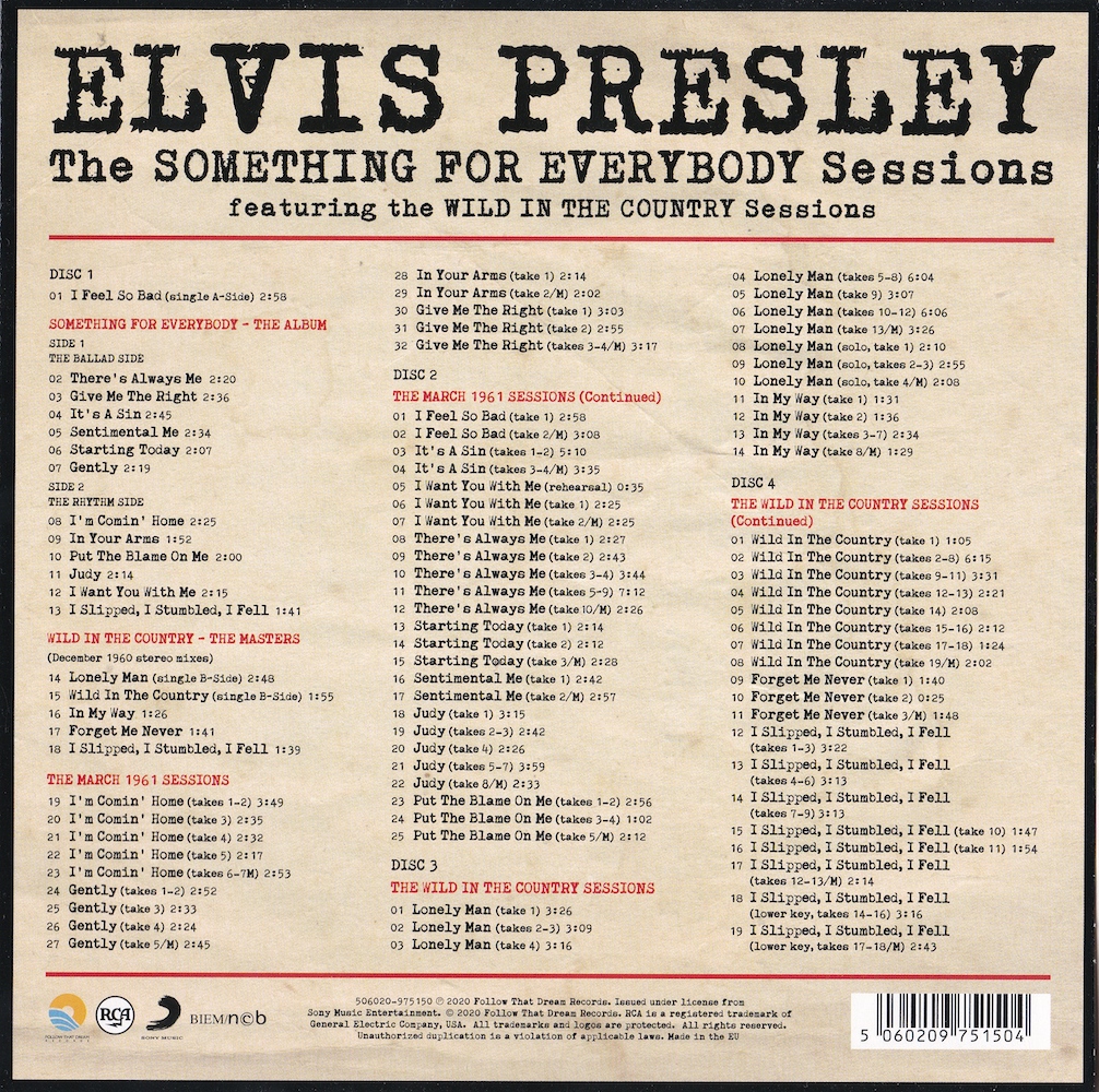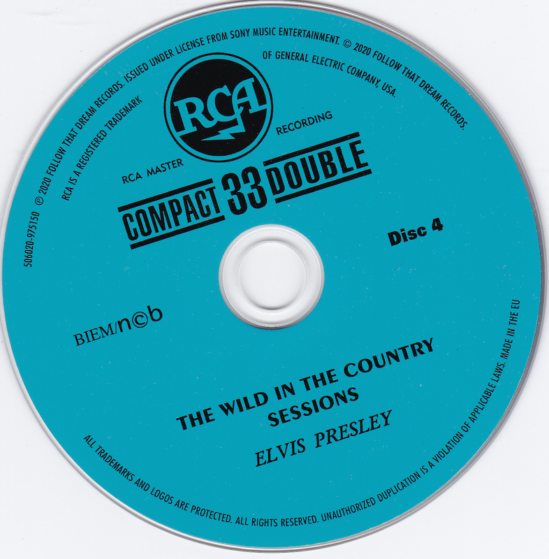 | Deluxe Sessions Package, with four CDs containing RCA's March 1961 recording sessions, and the November 1960 recording sessions for the 20th Century Fox picture Wild In The Country. |