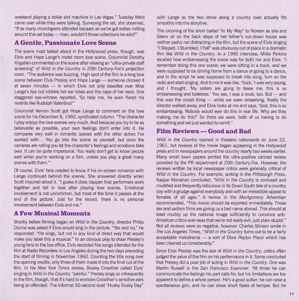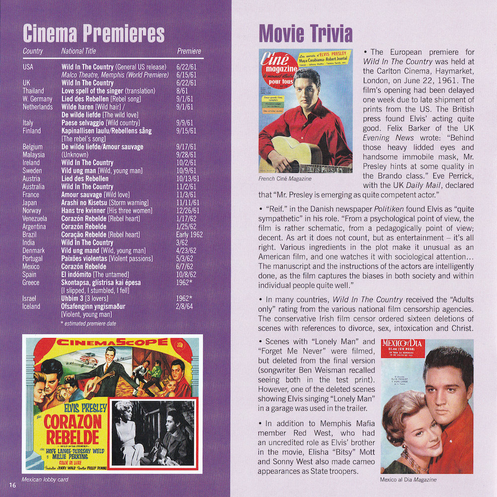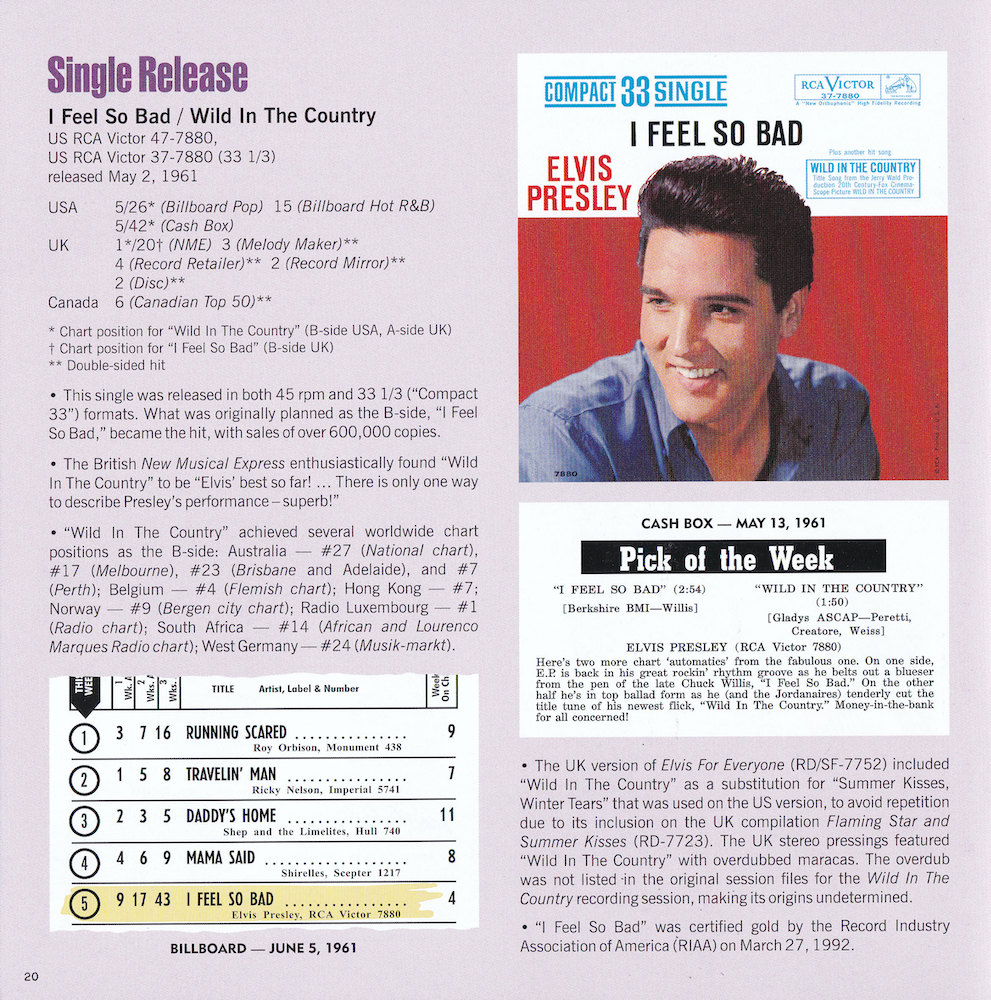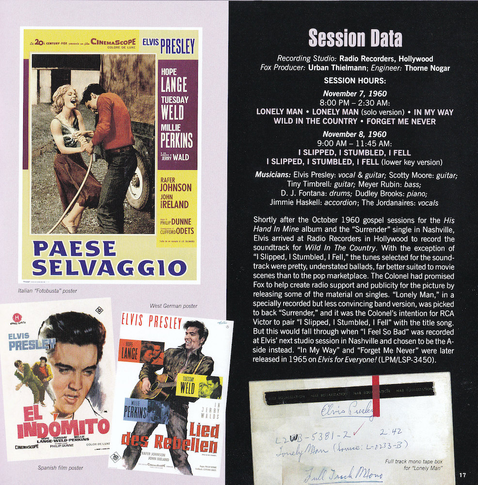 | Deluxe Sessions Package, with four CDs containing RCA's March 1961 recording sessions, and the November 1960 recording sessions for the 20th Century Fox picture Wild In The Country. |