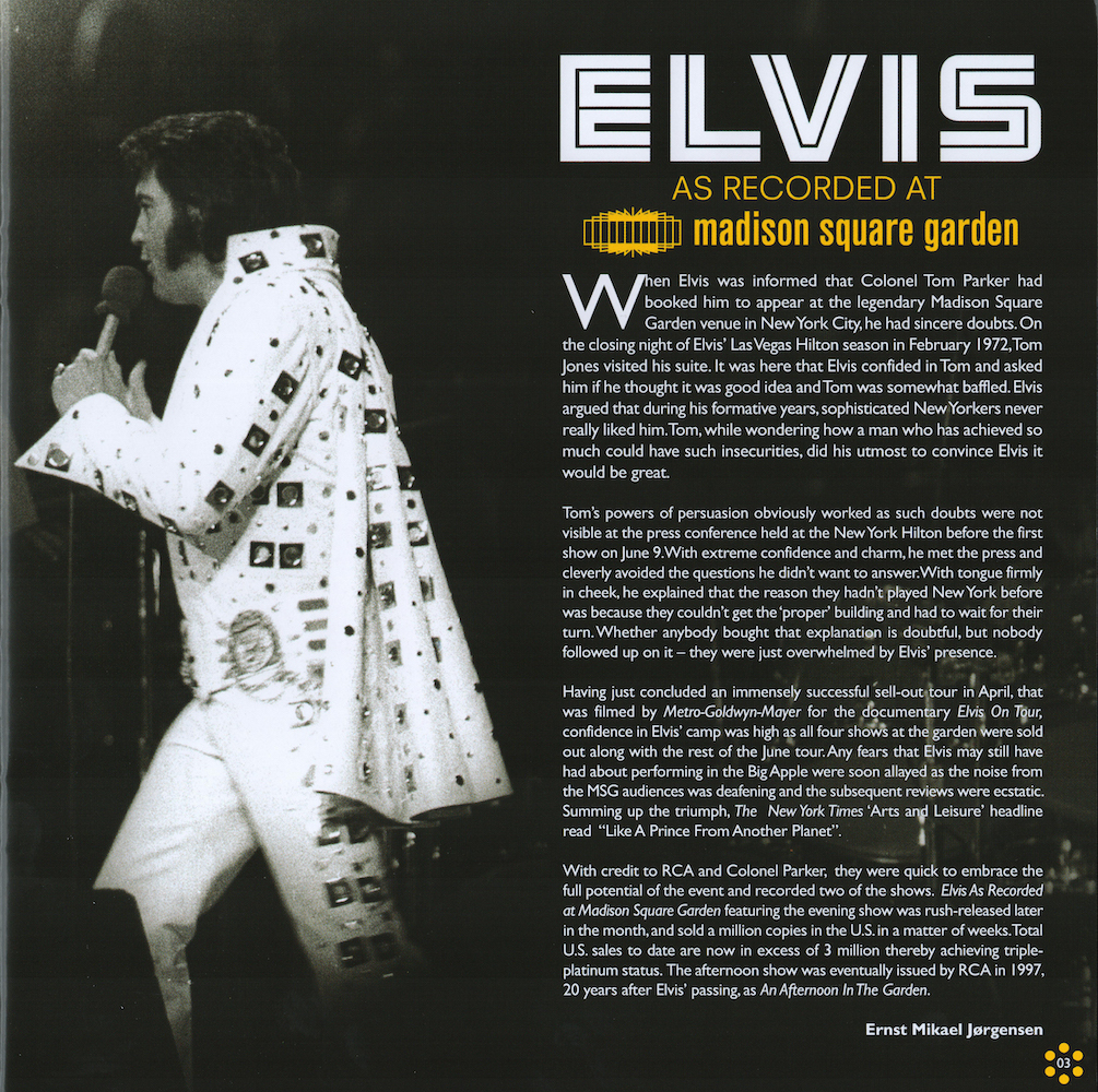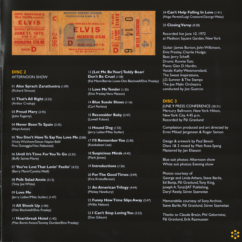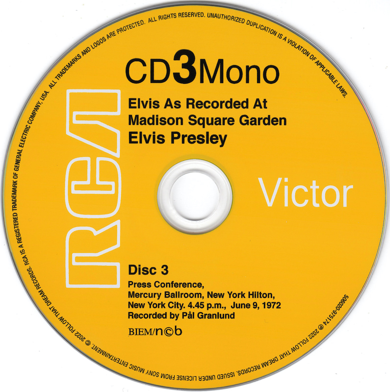 This 50th Anniversary FTD 8" Deluxe edition celebrates two legendary shows from June 10 1972 with newly mixed versions of both shows by Memphian recording engineer Matt-Ross Spang. Disc 3 features the complete original press conference recorded at the New York Hilton, on June 9.