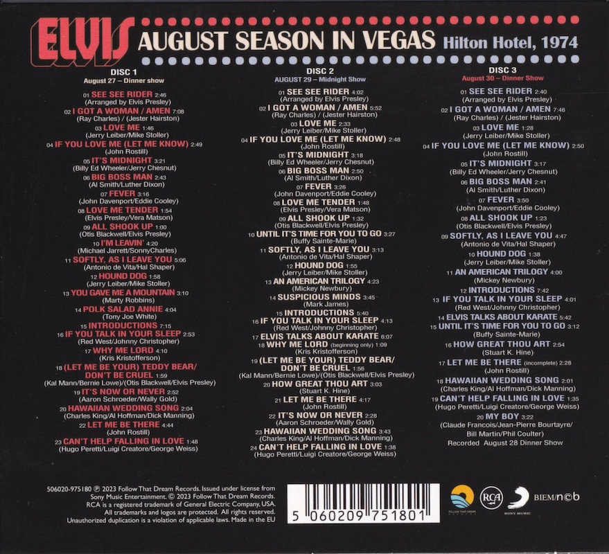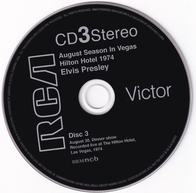 'My Boy' from the August 28 dinner show (CD3, track 20) had already been released before on the FTD set Las Vegas '74 in April 2017 (see here), so it's inclusion again here is a mystery!