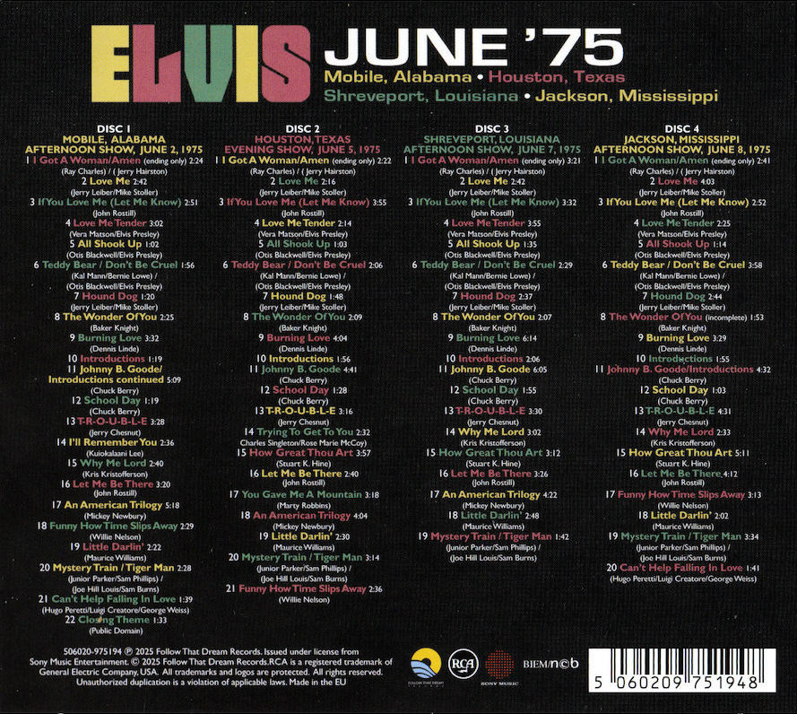 The original source tape for the June 5 show (CD2) runs out after 'Funny How Time Slips Away' and the tape for the June 7 show (CD3) runs out during 'Mystery Train / Tiger Man'.