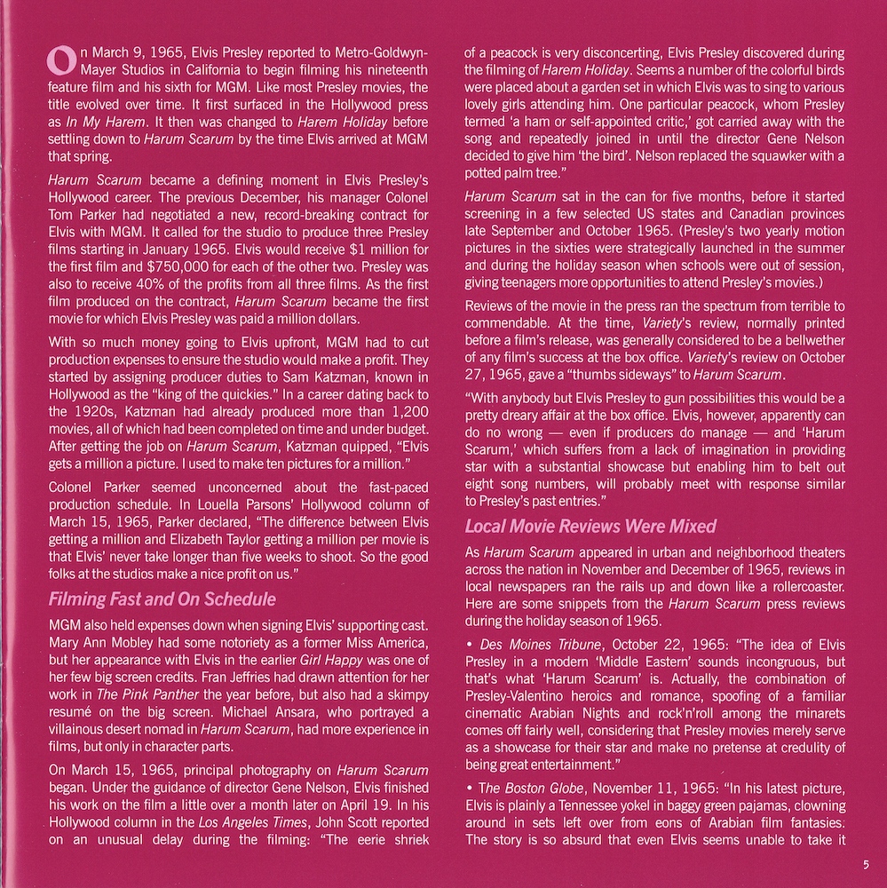 | Deluxe Sessions Package, with three CDs containing the recording sessions for the MGM picture Harum Scarum. |