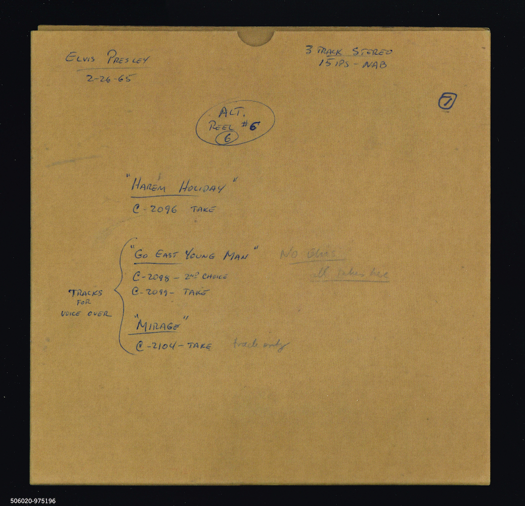 Go East - Young Man (vocal overdub of track - master) (2107) |
