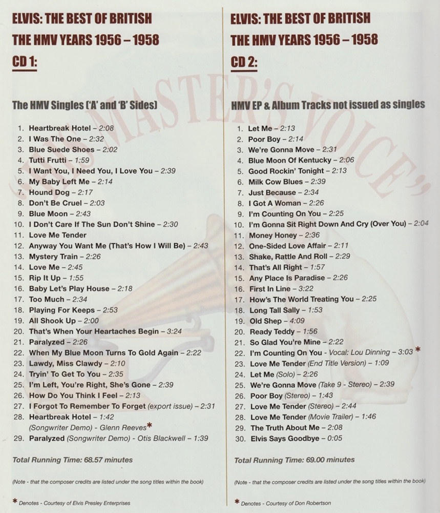 Officially gathered together for the FIRST TIME on two exclusive free CDs, is every Elvis track released by HMV. Added to these are bonus songwriter demos and Elvis outtakes to complete the audio story upon which the foundations of the global popular music culture and industry was built.