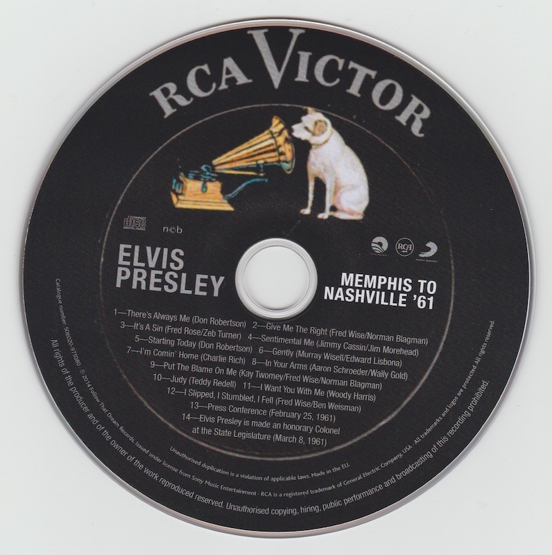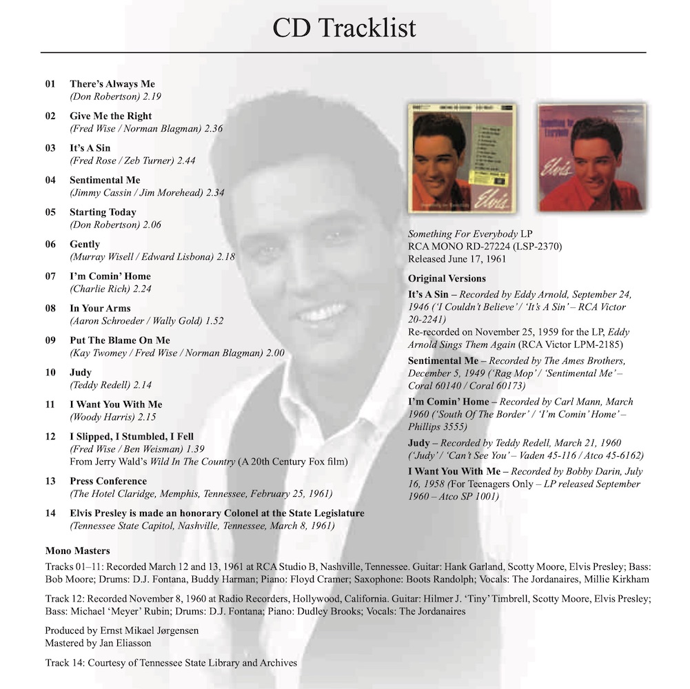 Accompanying the book is a CD with recordings of both this ceremony and an earlier press conference together with the mono version of Elvis' classic 1961 album Something For Everybody.