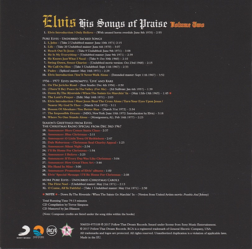 Elvis' vast knowledge and diversity of spiritual music is fully highlighted within the combined 700 pages, his sincere interpretations of them and how he dipped into music from the gospel category throughout his career.