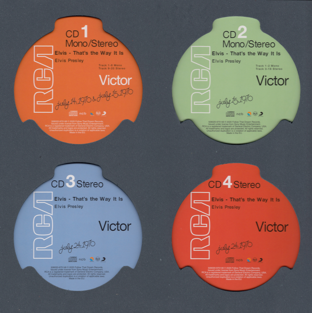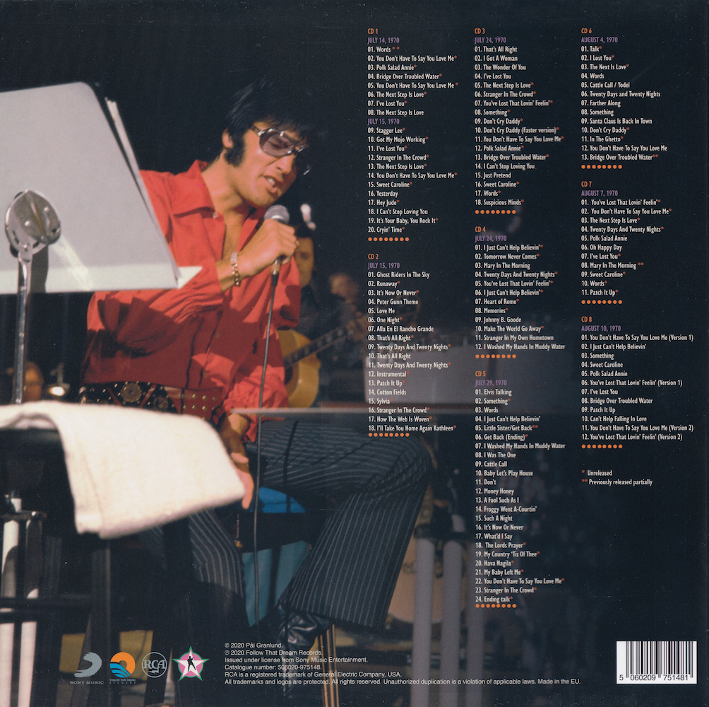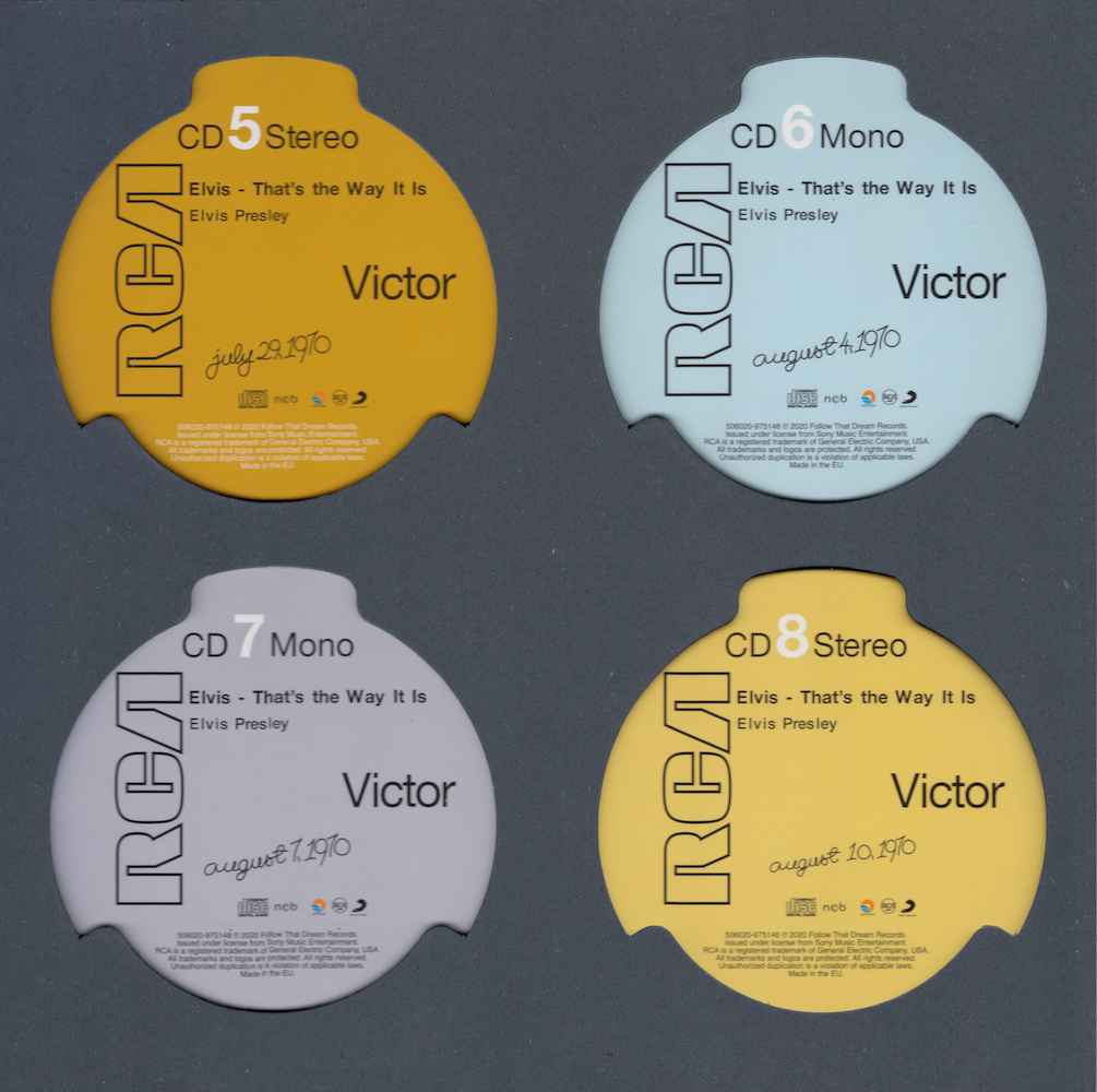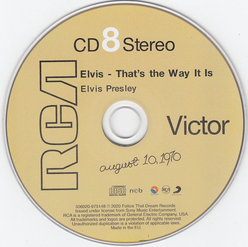 The tracks from the August 10 afternoon rehearsal on CD8 were recorded on a 16-track tape machine by RCA, but almost all of the intro's were not captured on tape. Here FTD have reconstructed those opening pieces from live performances of the same songs; however, they did not observe the correct running order of the tape.