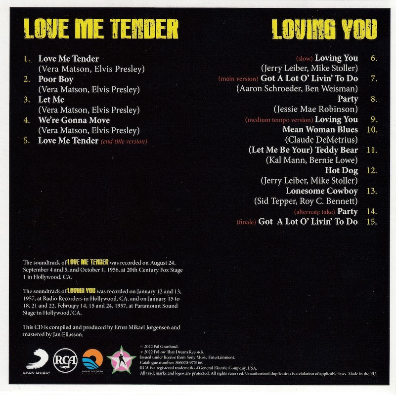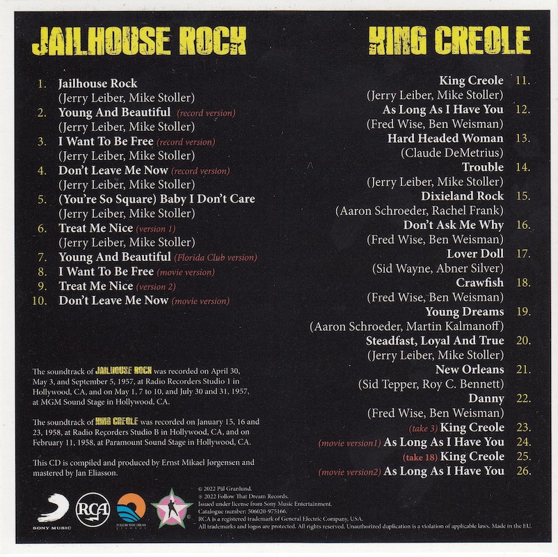 Plus two bonus CD's featuring the soundtracks from Love Me Tender, Loving You, Jailhouse Rock and King Creole.