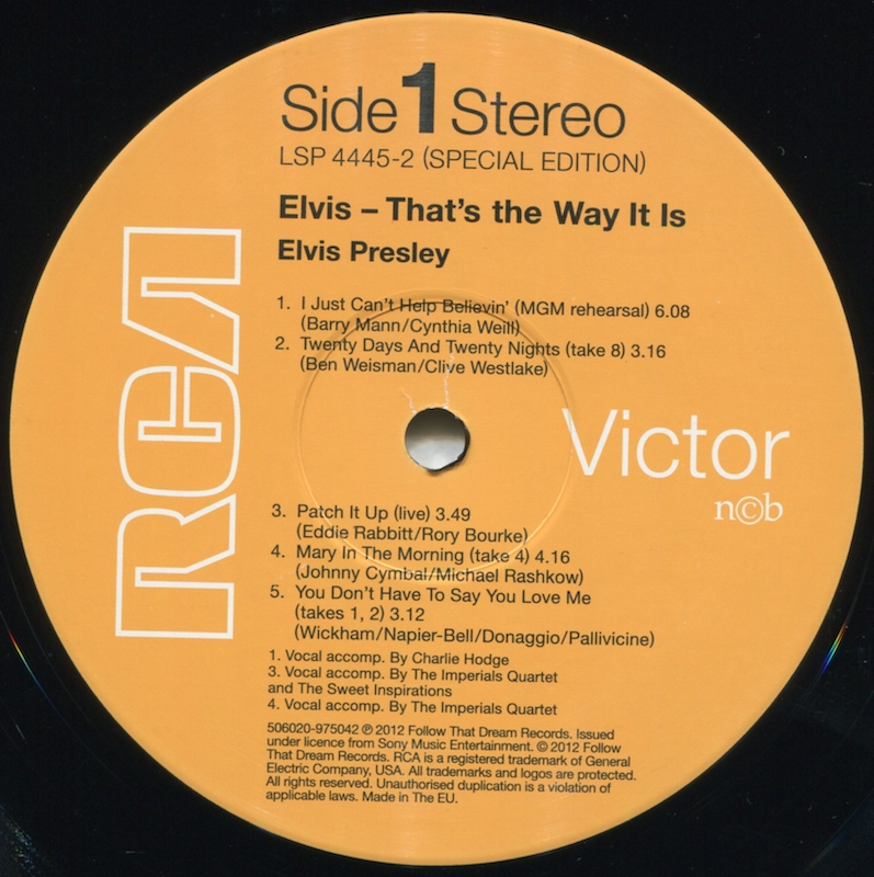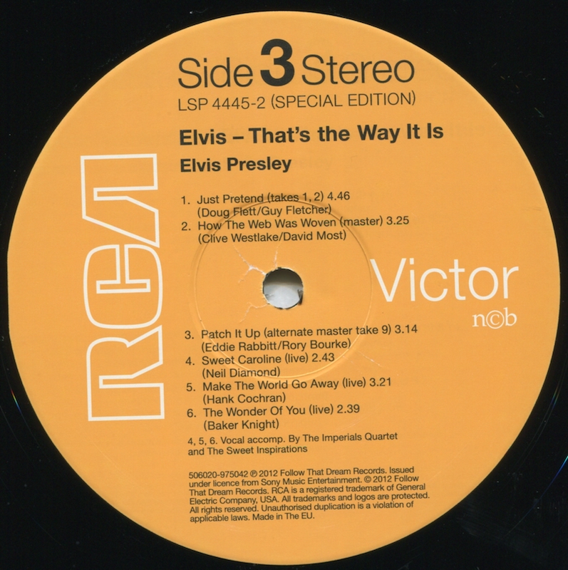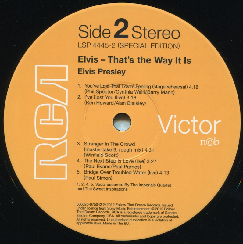The live versions of 'Make The World Go Away' (side 3, track 5)and 'The Wonder Of You' (side 3, track 6) are taken from the FTD release The Wonder Of You (see here).