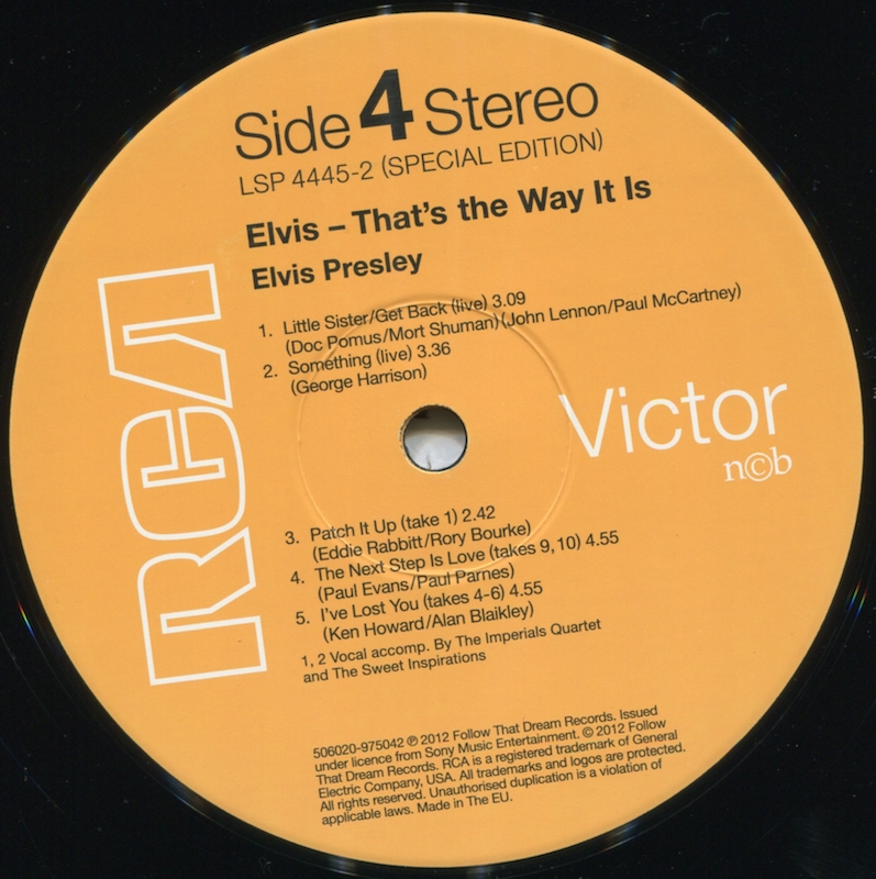 The live versions of 'Patch It Up' (side 1, track 3), 'I've lost You' (side 2, track 2) and 'The Next Step Is Love' (side 2, track 4) are all taken from the FTD release One Night In Vegas (see here).