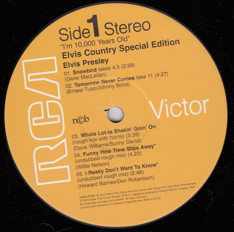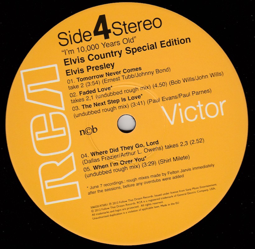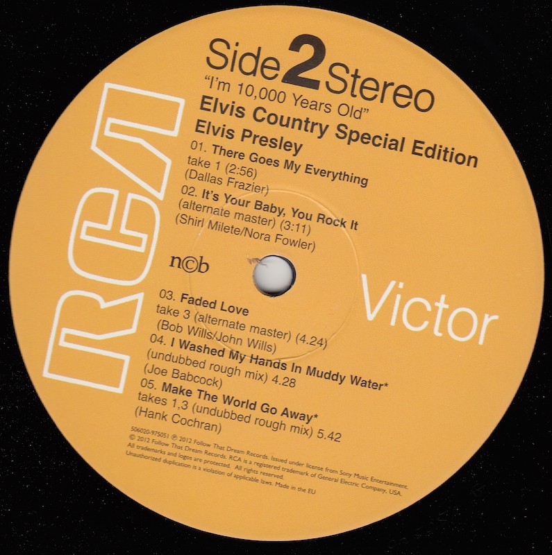 Elvis Country was first released by Follow That Dream as a 7 inch classic album in October 2008 (see here), and this vinyl edition is a compilation of tracks taken from that original release.